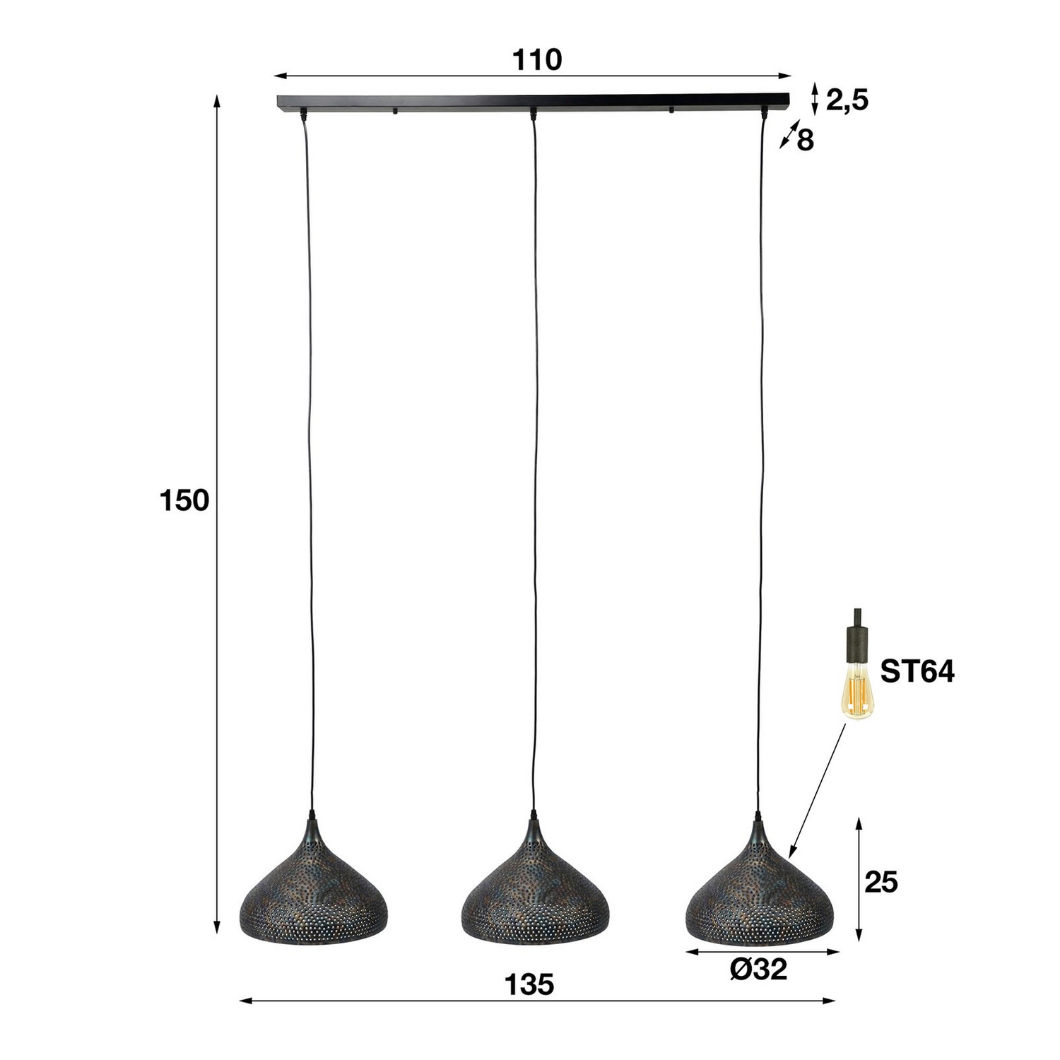 B-flokks Punchray hengiljós, trektarlaga lampi með þremur ljósum, loftljós, 60 W