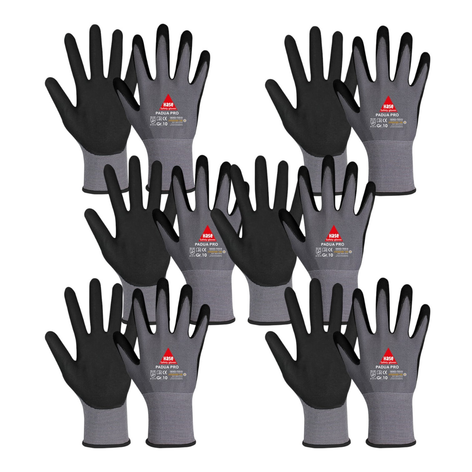 Öryggishanskar frá Hase í B-flokki, samsetningarhanskar, stærð 8, vinnuhanskar, 6 stykki
