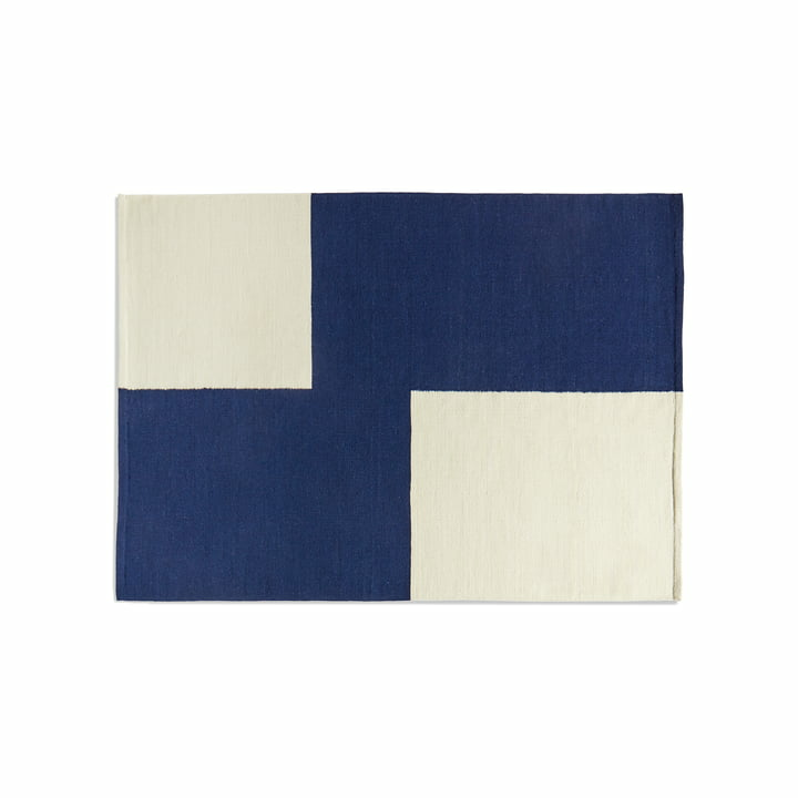 B-flokks Hay Ethan Cook Flat Works teppihlaupari 170 x 240 cm blár og hvítur