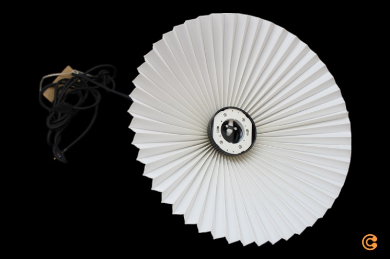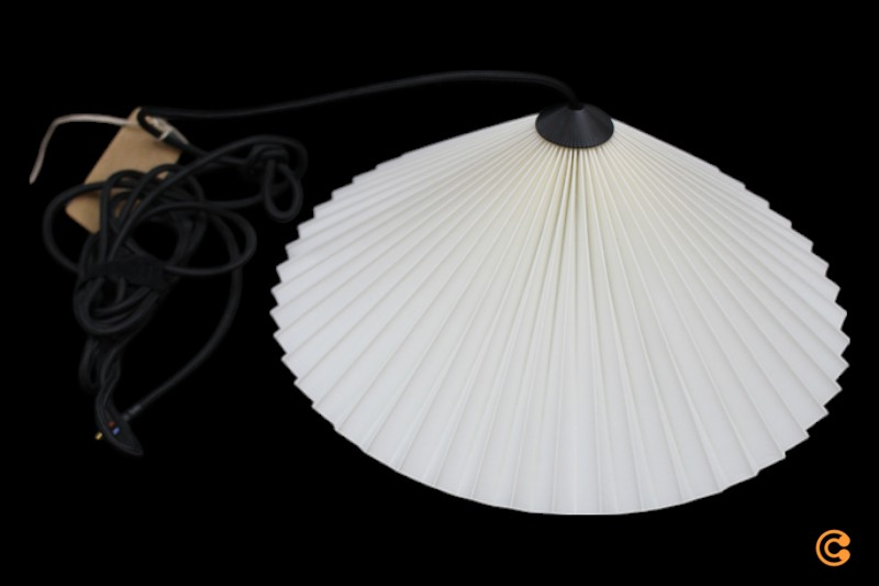 Hengiljós í viftuhönnun. Matin hengiljósið frá danska fyrirtækinu HAY er úr fellingaðri bómullarskjá og fléttaðri bómullarsnúru, sem skapar hagnýta og glæsilega loftljós. Skjárinn gefur hlýlegt og aðlaðandi andrúmsloft í hvaða herbergi sem er í húsinu og fæst í ýmsum stærðum og litum.