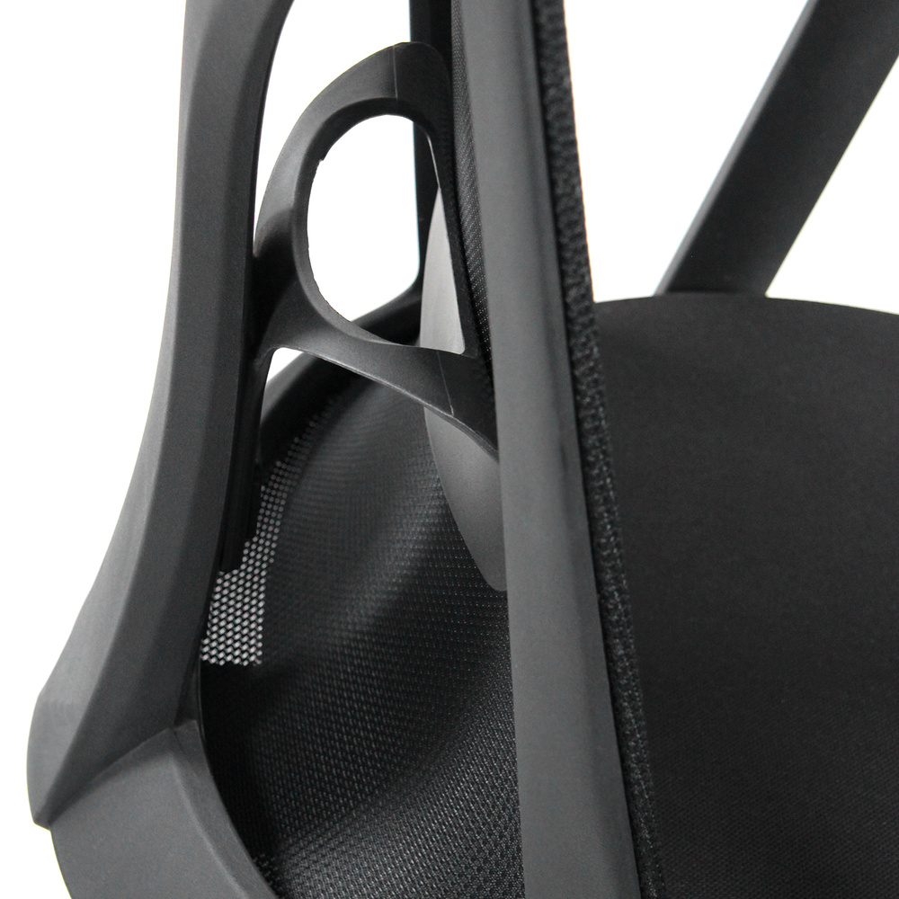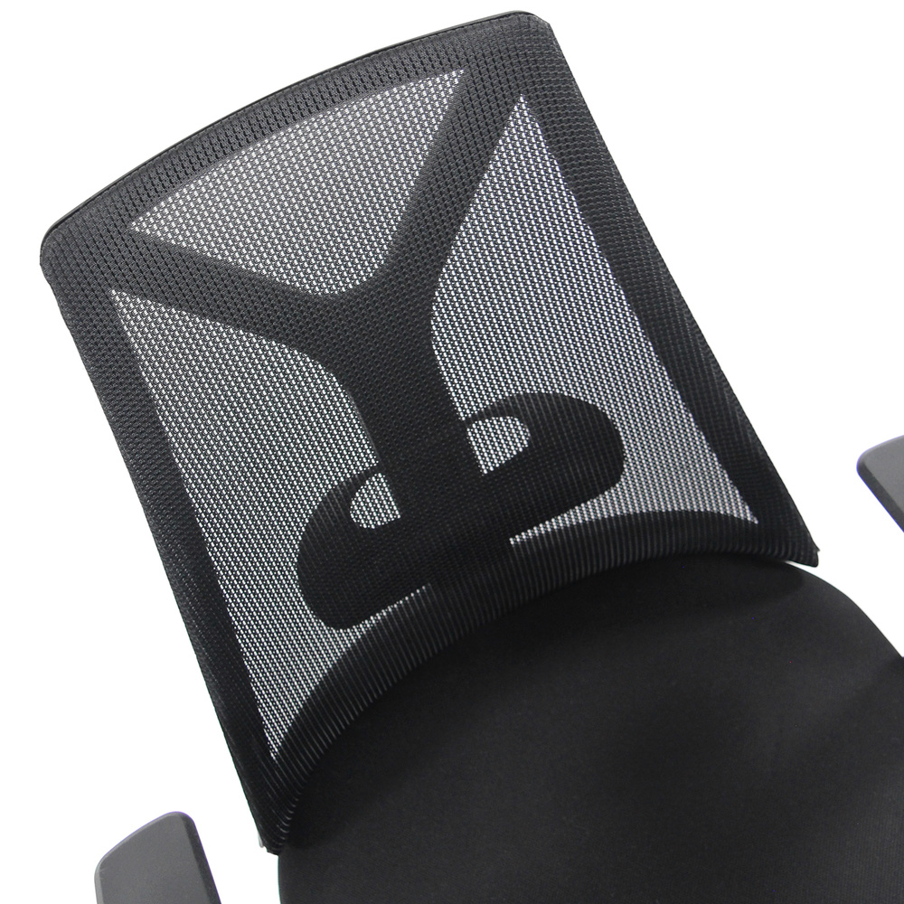 - Ergonomískt bakstuðning með innbyggðum mjóhryggsstuðningi og öndunarhæfu möskvaáklæði