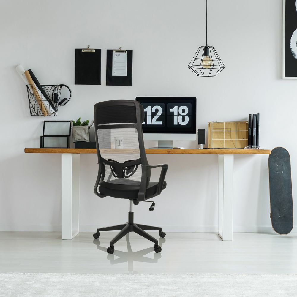 NEKEO er hagnýtur skrifstofustóll með framúrstefnulegri hönnun sem auðveldar vinnudaginn á heimaskrifstofunni þökk sé einstakri þægindum í sæti. Auk bólstraðs efnis í sætinu stuðla glæsilega sveigðir armpúðar einnig að þessum þægindum. Netbakið tryggir bestu mögulegu loftflæði sem stýrir hita. Tvöfaldur, fiðrildalaga, hæðarstillanlegur mjóbaksstuðningur veitir aukinn stuðning við bakið. Ennfremur gerir hallakerfi stólsins þér kleift að halla þér þægilega aftur hvenær sem er.