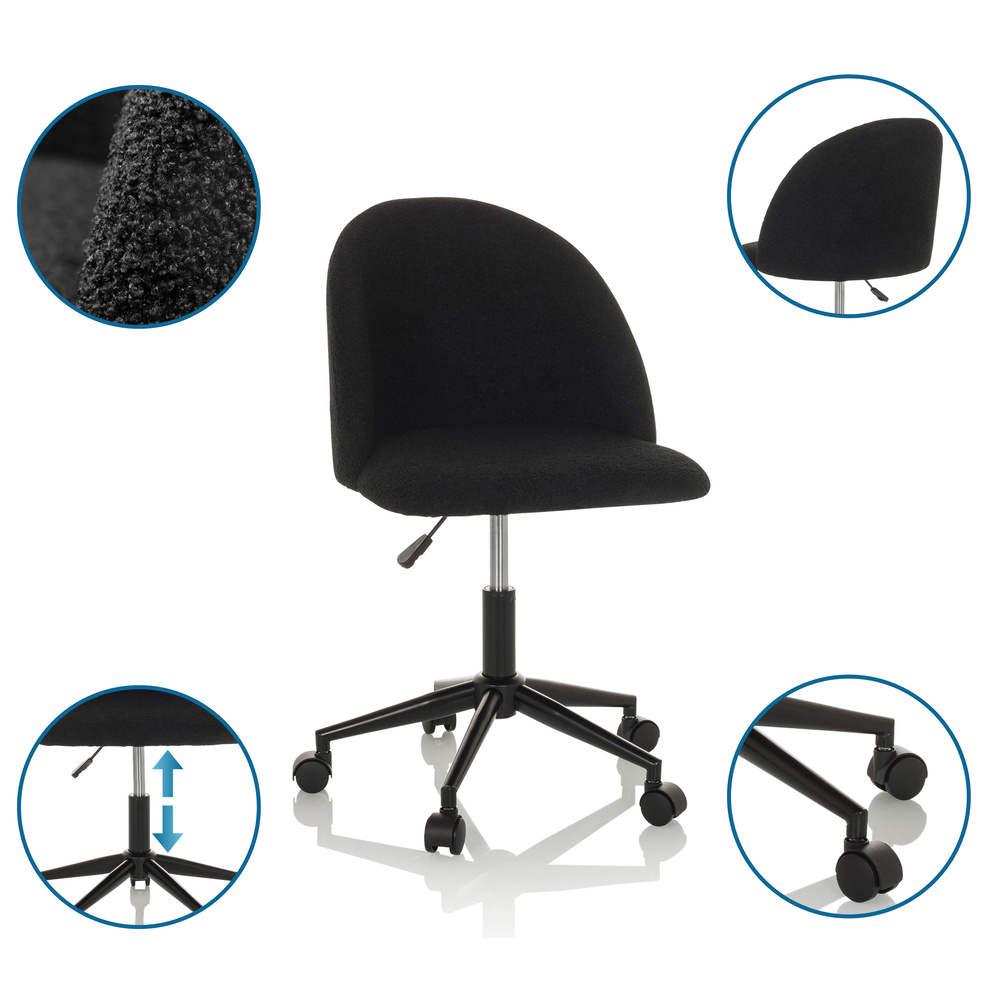 Snúningsstóll frá Hjh skrifstofu, Solao Ted B, svartur bouclé stóll, hægindastóll, húsgögn