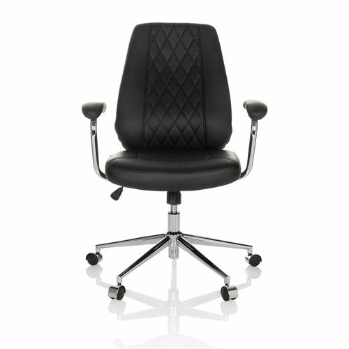 Hin einstaka hönnun THEO I stólsins okkar vekur strax athygli. Lúxuslega bólstraða sætið er þægilega mótað og bakstoðin er einnig mjúklega bólstruð og vinnuvistfræðilega ávöl. Áklæðið er úr demantssaumuðu gervileðri og hægt er að læsa vélbúnaðinum og stilla hann að þyngd notandans á augabragði. Glæsileg hönnun fullkomnast á samhljóða hátt með krómhúðuðum botni.