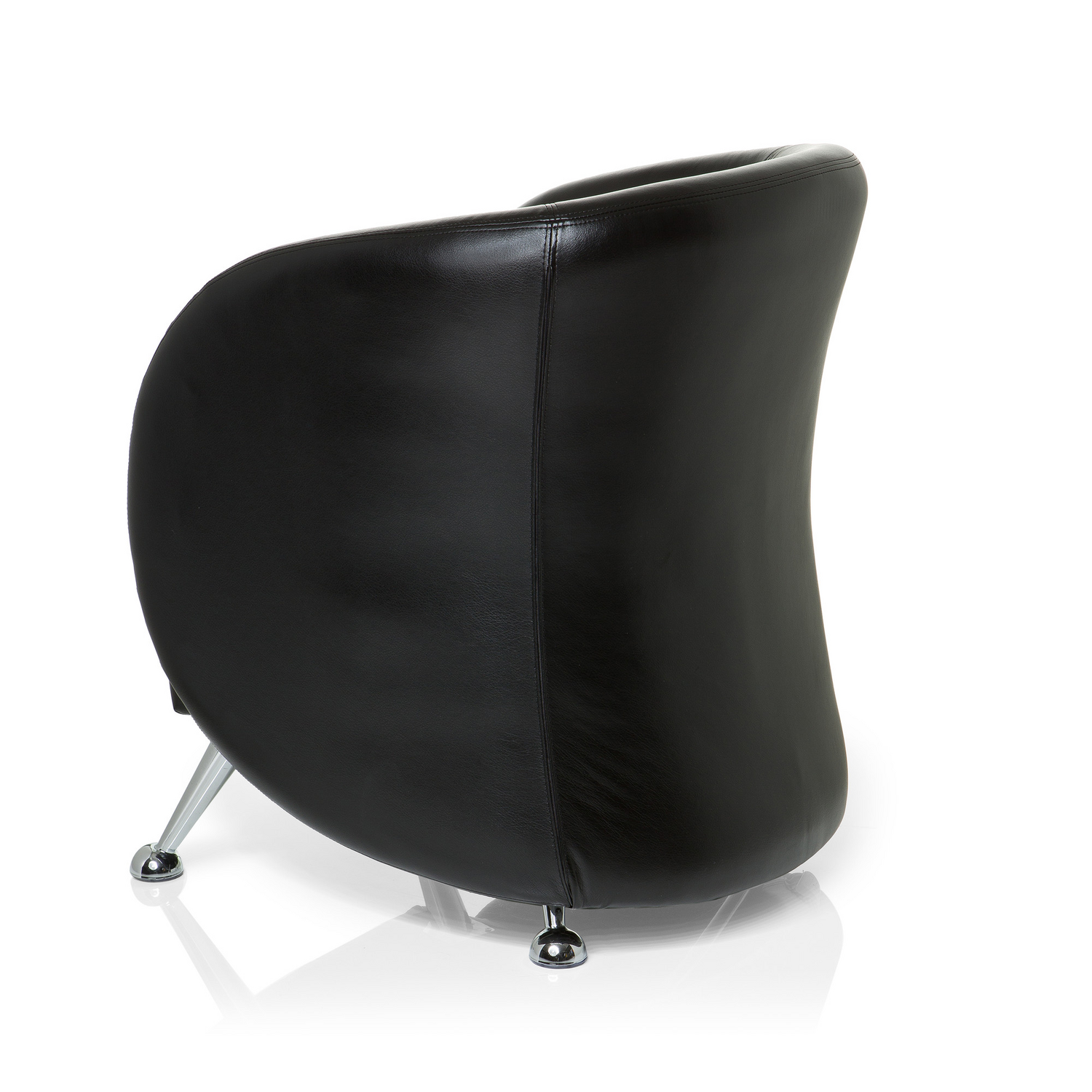 B-flokks Hjh skrifstofustóll, klúbbstóll, hægindastóll, gervileður, svartur, armpúðar, fótur