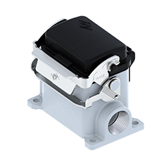 „Grunnhús, stærð 44,27, V-gerð ál, 1 ryðfrítt stálfesting, 1x M20 hliðarskrúfa, fjaðurhlaðin lok“. Húsið í V-gerð býður upp á nýstárlegt læsingarkerfi í stöðluðum iðnaðartengistærðum, gert að öllu leyti úr ryðfríu stáli og nánast ómögulegt að opna óvart, jafnvel við erfiðar aðstæður.