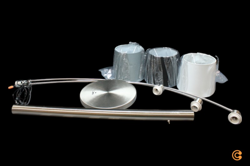 B-lager Just Light gólflampi Melvin E27 svartur grár hvítur þriggja ljósa bogalaga