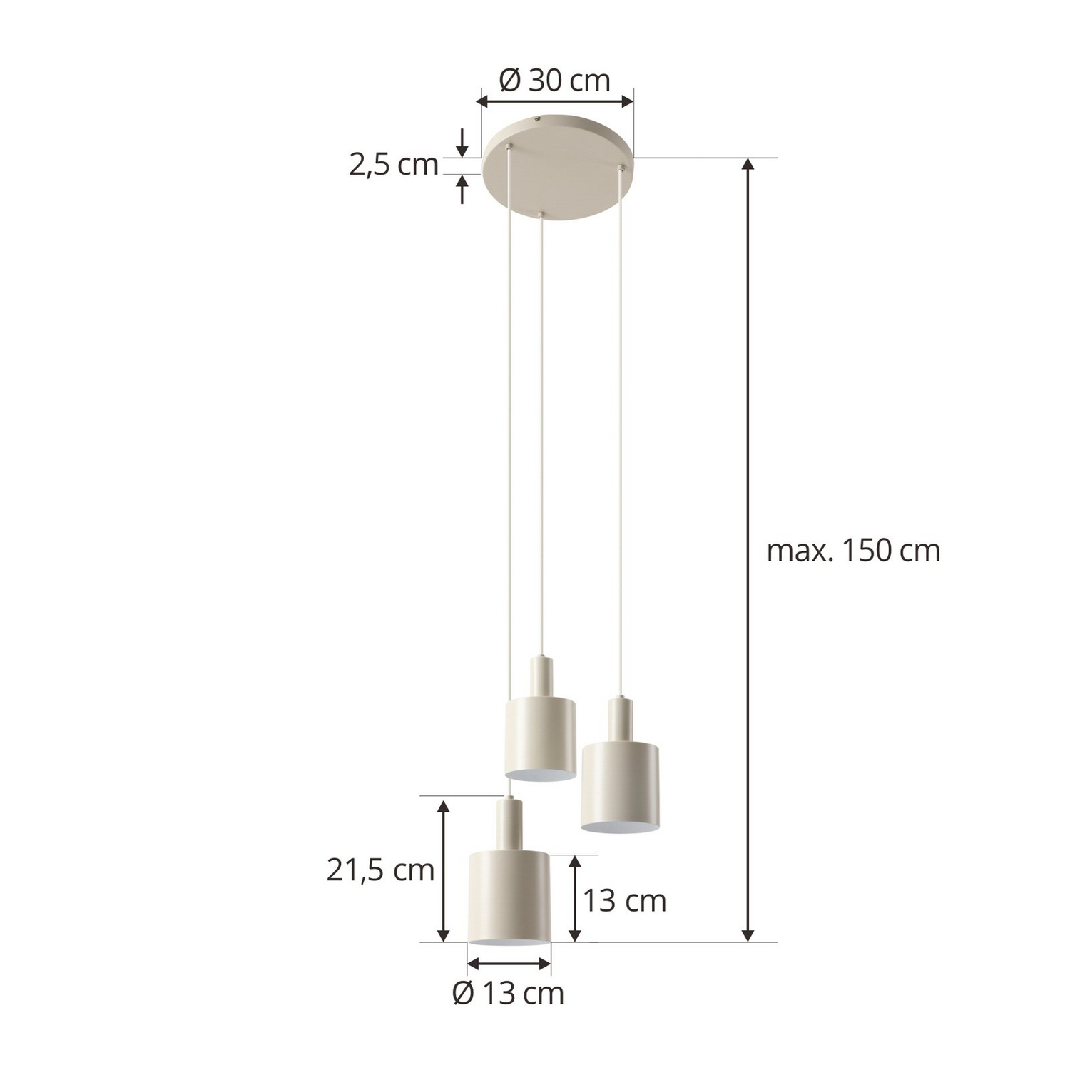 Þriggja pera Ovelia hengiljós í beige lit