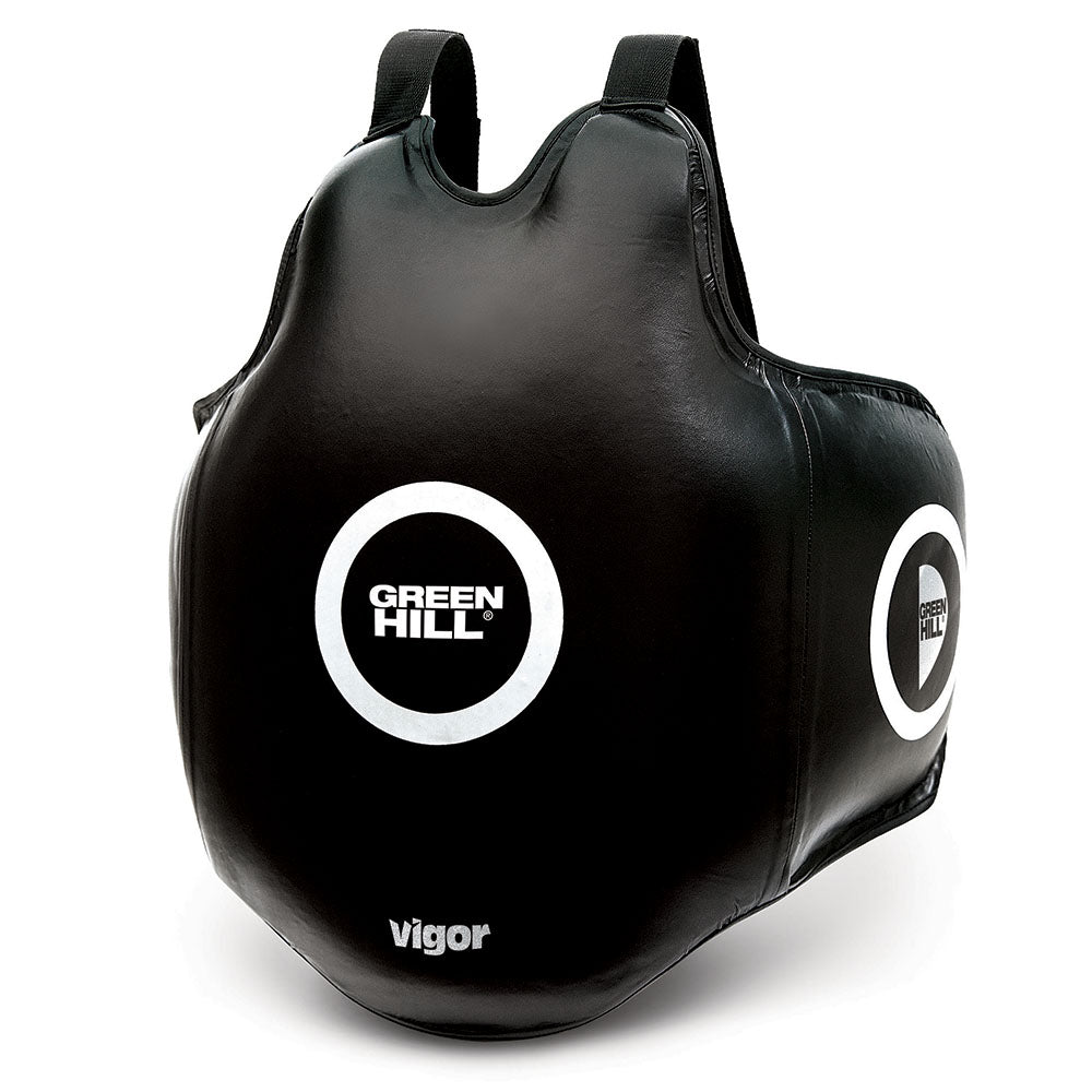 Erleben Sie ultimativen Schutz mit dem Green Hill Bauchschutz VIGOR. Hergestellt aus hochwertigem Kunstleder, bietet dieser Bauchschutz eine mehrschichtige Polsterung für optimale Schlag- und Trittdämpfung. Mit markierten Trefferbereichen an der Front und beiden Seiten, ist er ideal für ein präzises und effektives Training.