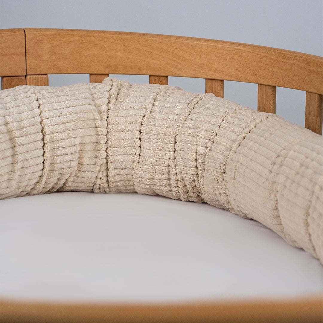 Das hochwertige Cordmaterial ist weich, robust & angenehm auf der Haut. Die flexible Form sorgt dafür, dass sich Arme und Beine deines Babys nicht in den Gitterstäben verfangen, während die atmungsaktive Füllung für zusätzlichen Komfort sorgt.