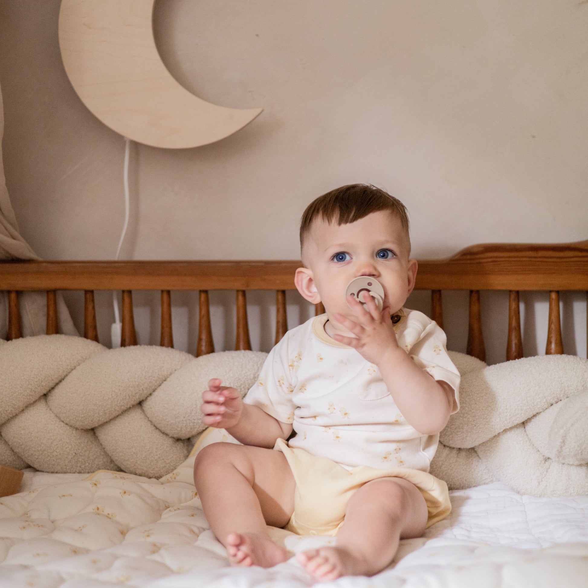 Die Bettschlange & Bettzopf aus Bouclé-Teddystoff von District4Kids schenkt deinem Baby Geborgenheit, Schutz & Komfort im Schlaf. Der weiche, geflochtene Bouclé-Stoff schützt zuverlässig vor harten Gitterstäben, Stößen und Zugluft – gleichzeitig sorgt die kuschelige Oberfläche für ein besonders gemütliches Schlaferlebnis.