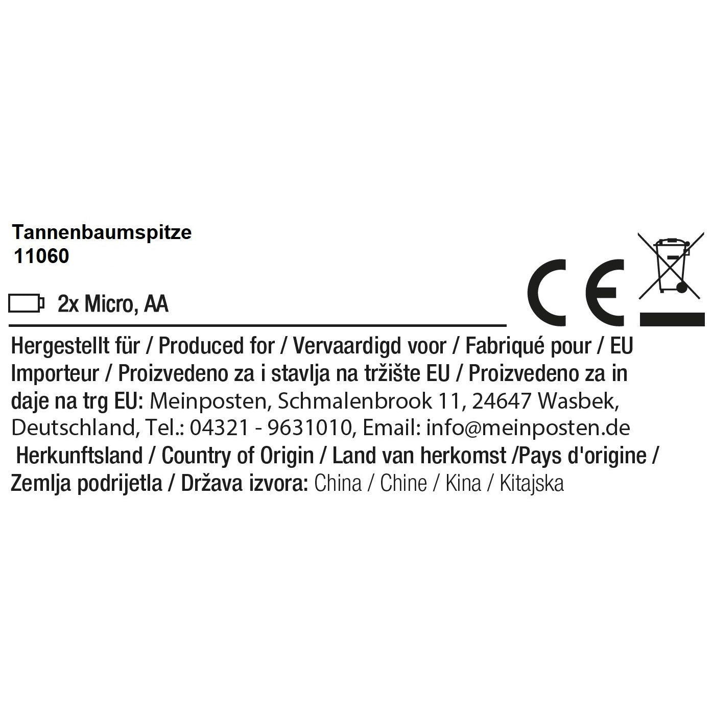 Christbaumspitze 35cm Baumspitze Weihnachten Metall Glitzer LED Stern B-WARE