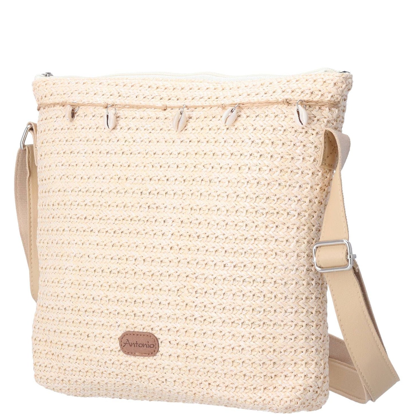 Damen Bast Tasche M » Umhängetasche ca. 30 x 26 cm » sommerliche Tasche mit Handy-Fach» Handtasche mit kleinen Muscheln