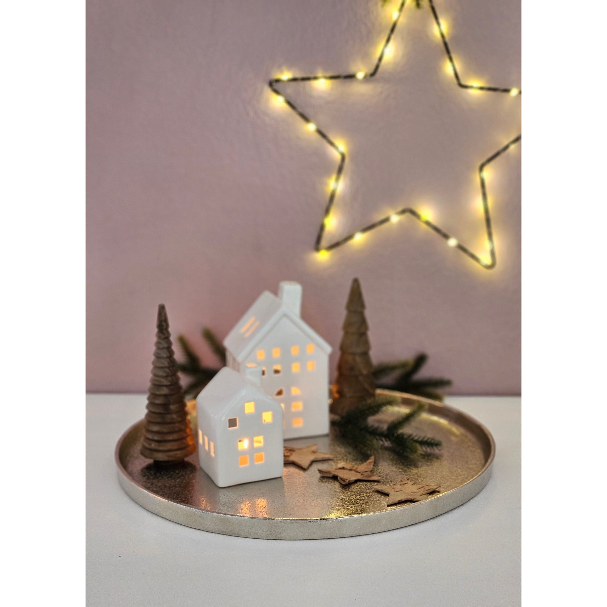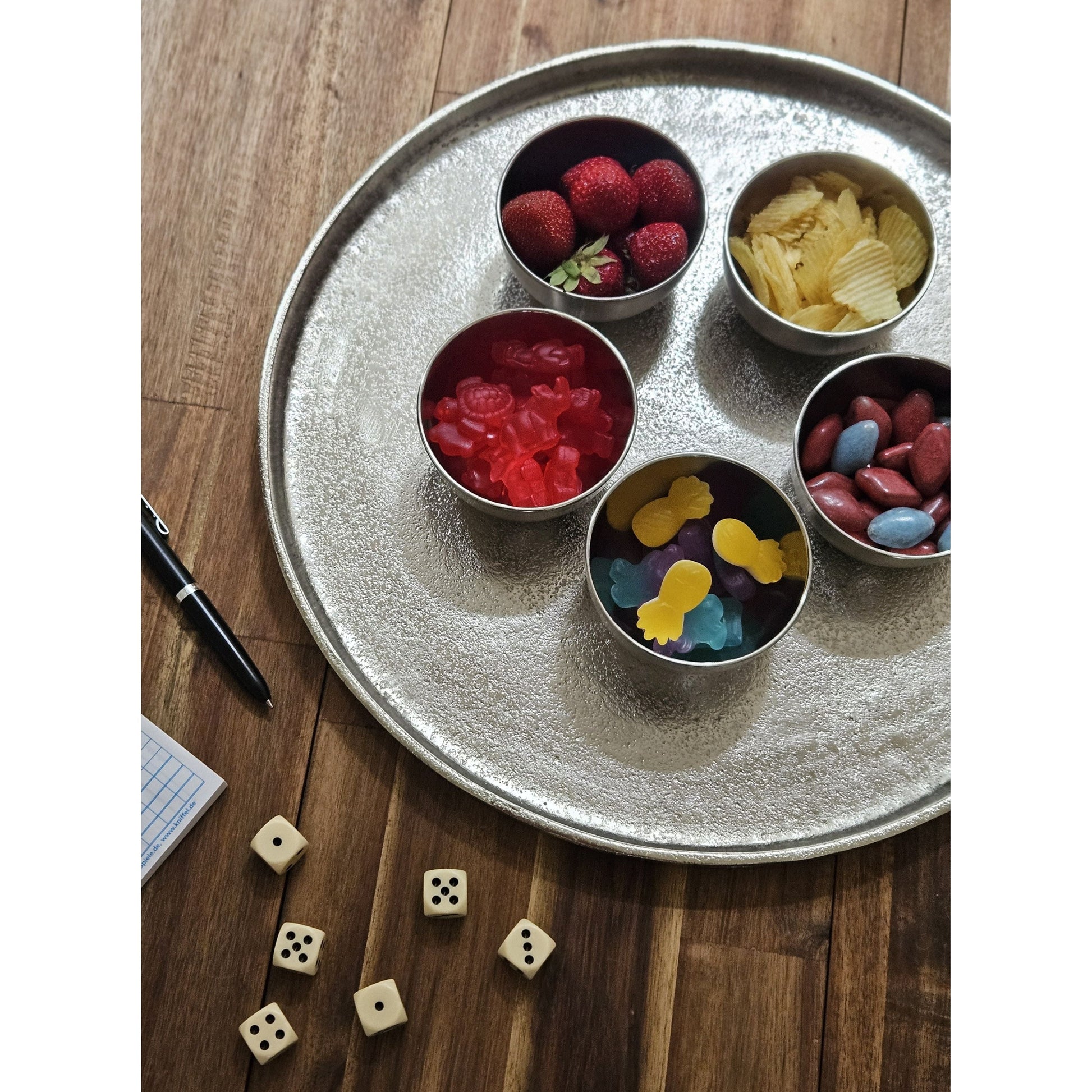 Deko Teller Schale silber rund 35 cm Kerzentablett Schale Metall Dekoration schwere Qualität