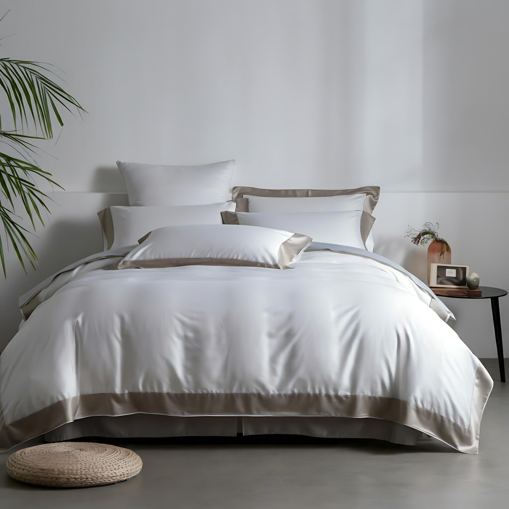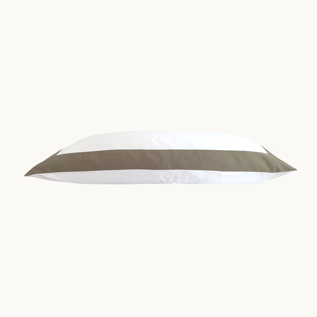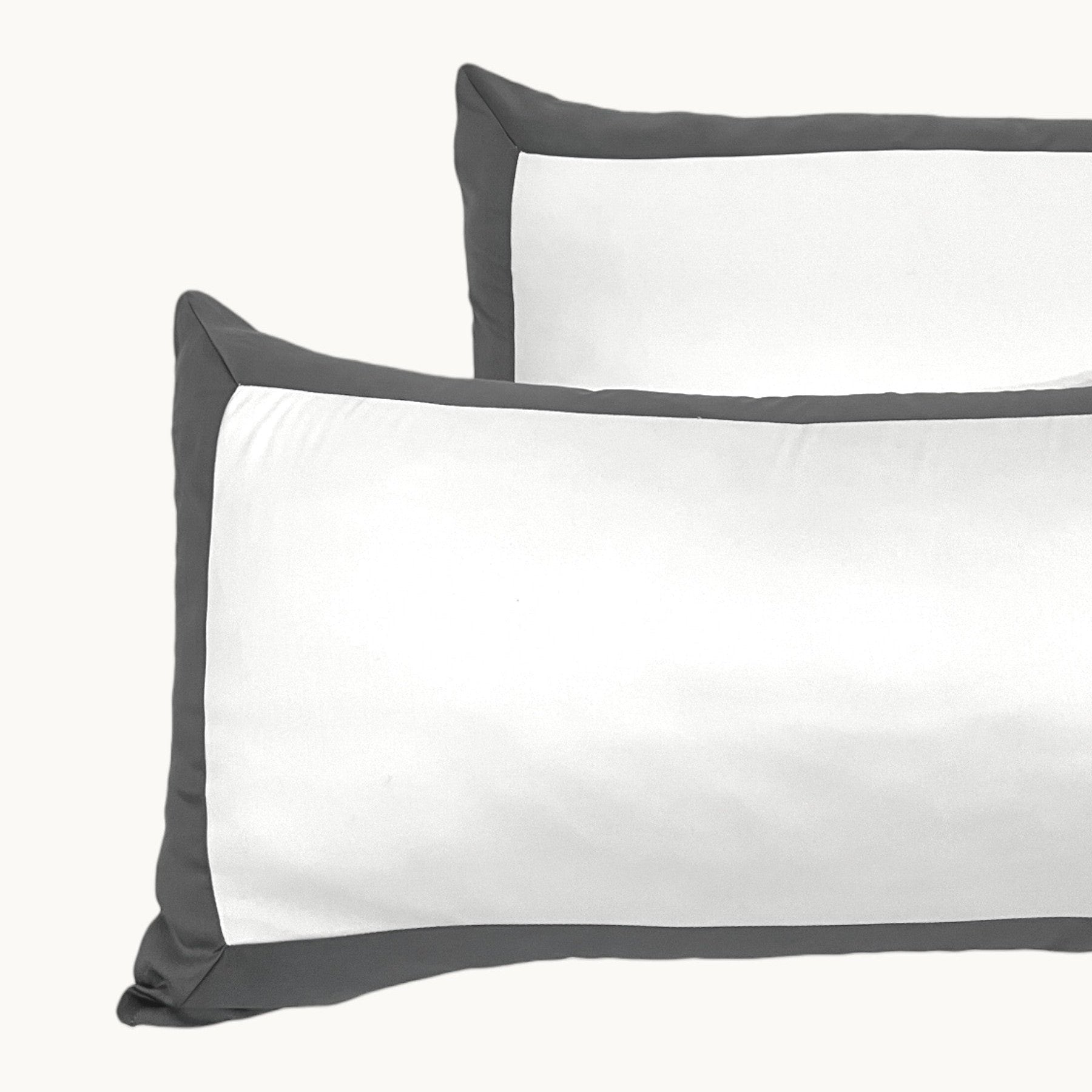 Koddaverin úr Eklipse línunni skera sig úr með nútímalegri hönnun, með áberandi hvítum botni og breiðum litríkum köntum. Þessi koddaver eru úr 100% egypskri bómull með extra löngum grunnþráðum í fínu 600 þráða satínvefnaði og bjóða upp á bæði lúxus og endingu, ásamt smáatriðum eins og skurðum hornum fyrir fágað útlit.