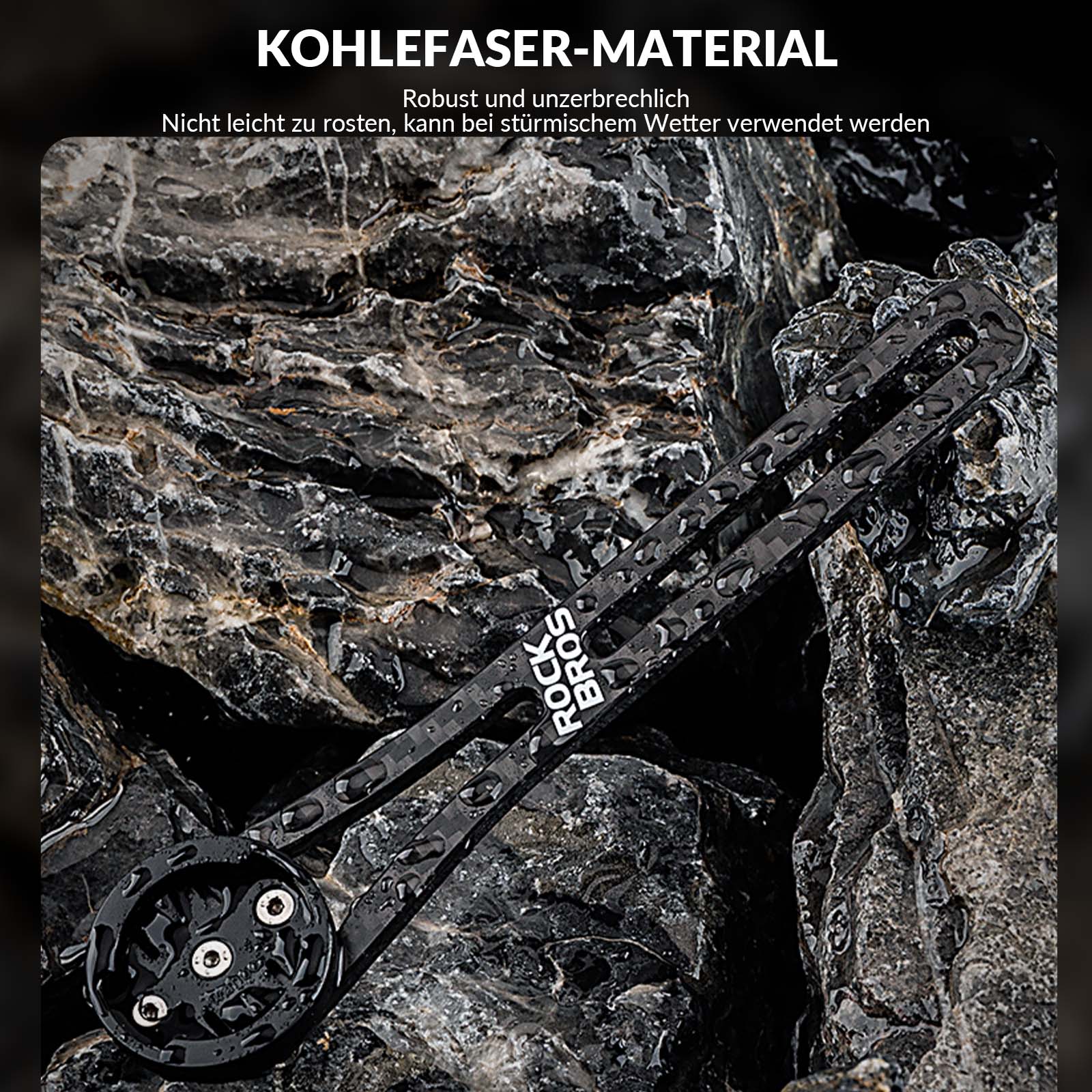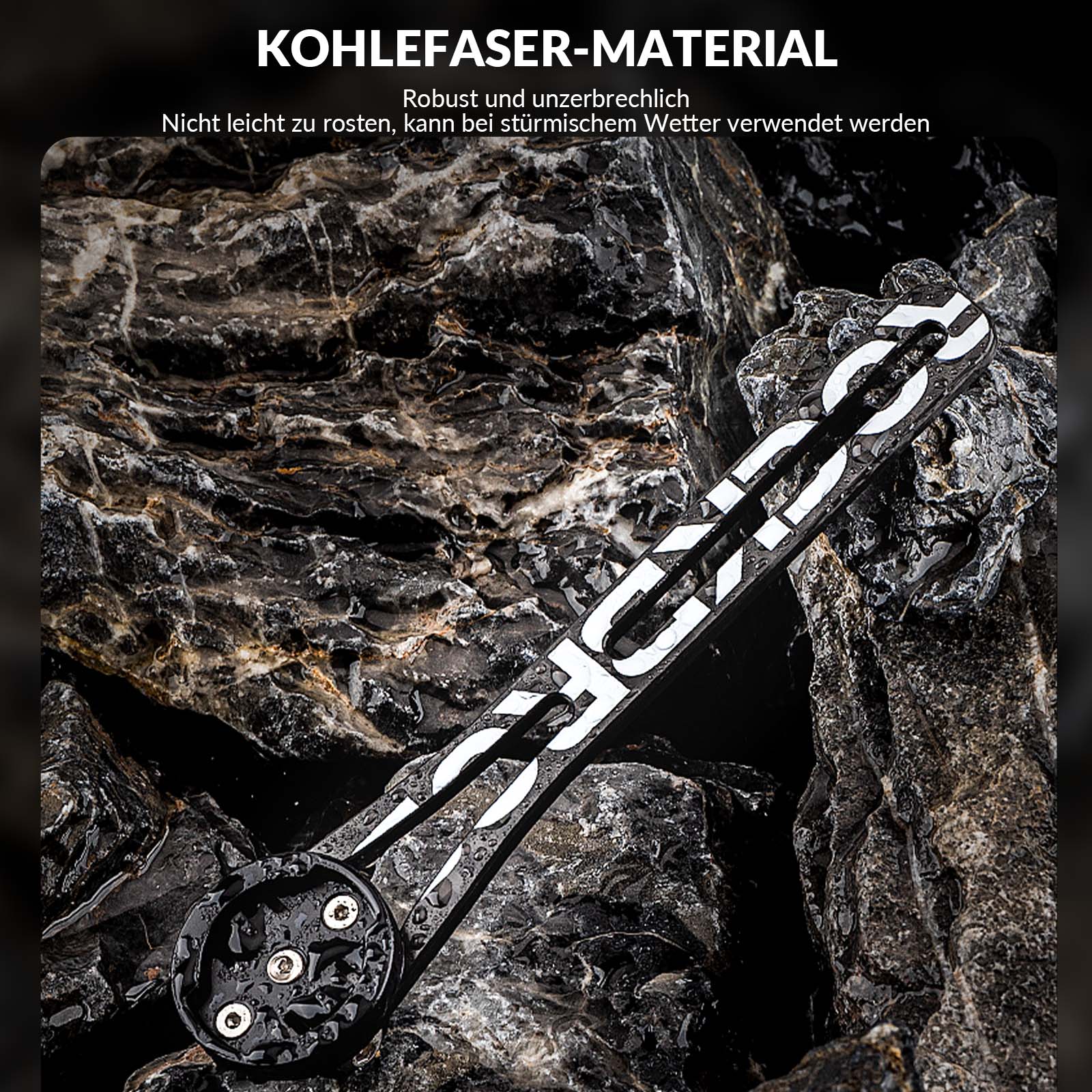 - Kolefnisefni: Hraðamælifestingin fyrir hjólið er úr kolefnistrefjum, sem gerir hana endingargóða, rispuþolna og óbrjótanlega. Festingin vegur aðeins 13 g, sem gerir hana léttan en samt sterkan.