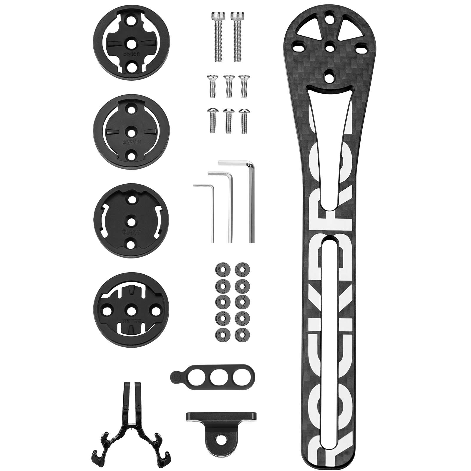 Settið inniheldur allan nauðsynlegan fylgihluti, þar á meðal fjórar staðlaðar botnplötur fyrir Garmin, Bryton, Wahoo og Giant, GoPro millistykki og millistykki fyrir hjólaljós. Festingarkerfið gerir kleift að staðsetja hjólatölvuna í miðju stýrisins.