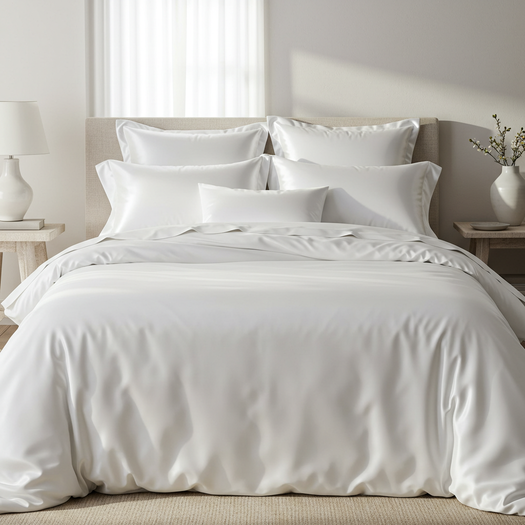 Þetta efni er handvalið, extra langþráð bómull og sameinar hágæða trefjagæði og meistaralega handverk í Finole Atelier. Efnið umlykur þig mjúkri og smjörkenndri tilfinningu sem verður enn mýkri með hverjum þvotti, en hitastillandi eiginleikar þess tryggja ró og þægindi í öllum árstíðum.