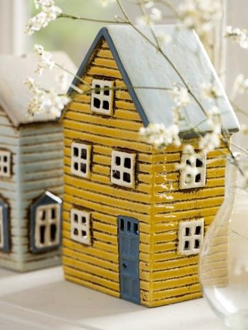 Dekoratives Keramikhaus für Teelichter. Liebevolle Verarbeitung, besonders schön als Ensemble.
