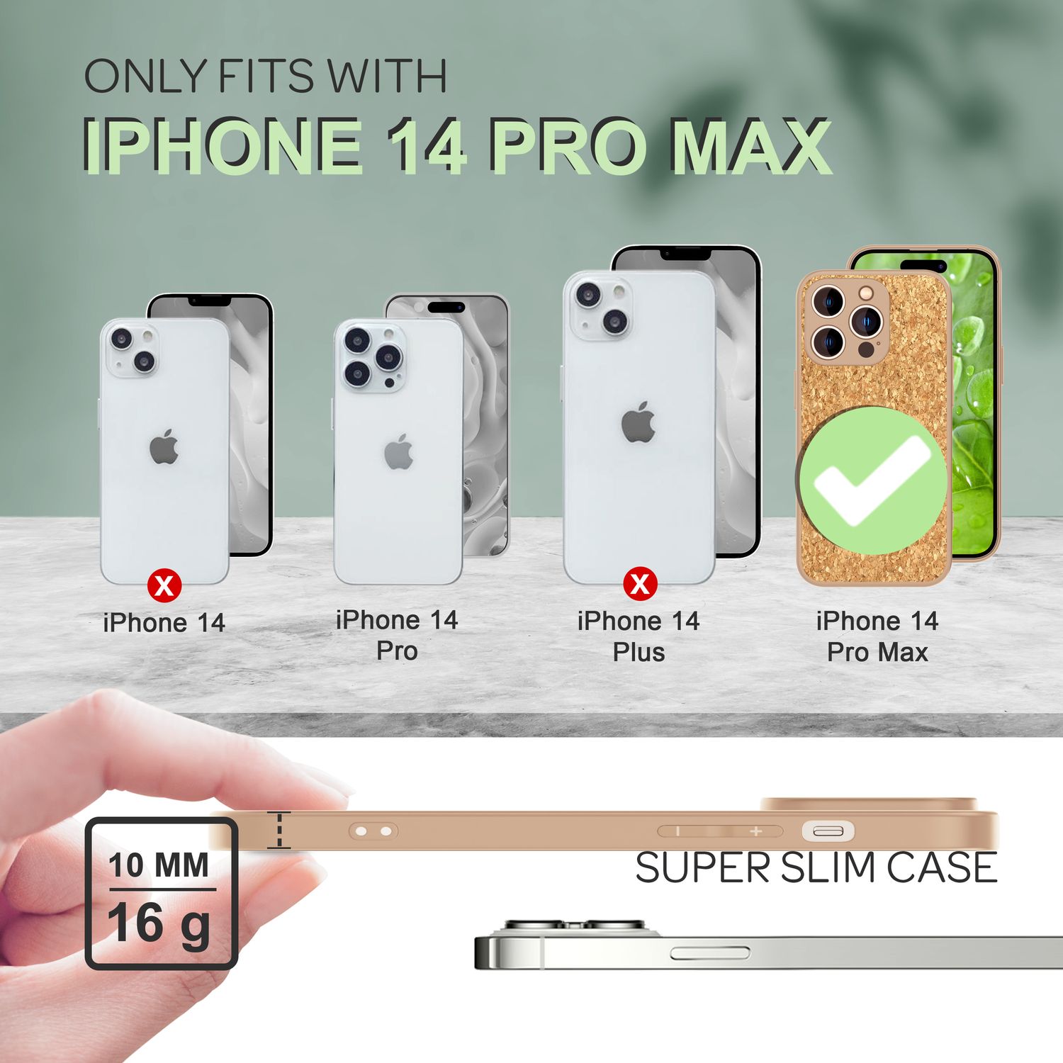 Hulstur úr náttúrulegum korki fyrir iPhone 14 Pro Max, TPU símahulstur, korkhulstur