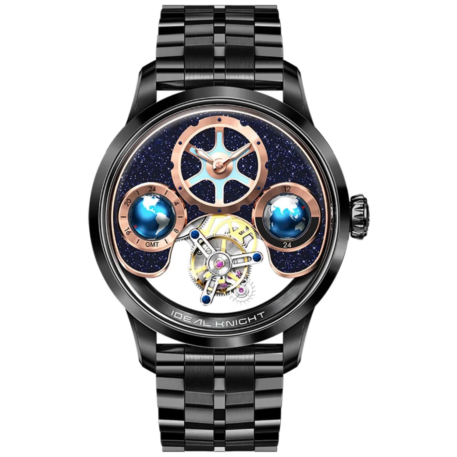 Lyftu úrasafni þínu upp með IDEAL KNIGHT 6805 Blue Earth seríunni , sem er sannkölluð tjáning vélrænnar listfengi og nútíma lúxus. Þetta sjálfvirka Tourbillon úr er hannað fyrir fágaða herramenn og er með glæsilegri 3D Blue Earth beinagrindarskífu , umlukinni sterku 316L ryðfríu stáli og varið með rispuþolnu safírkristallgleri .