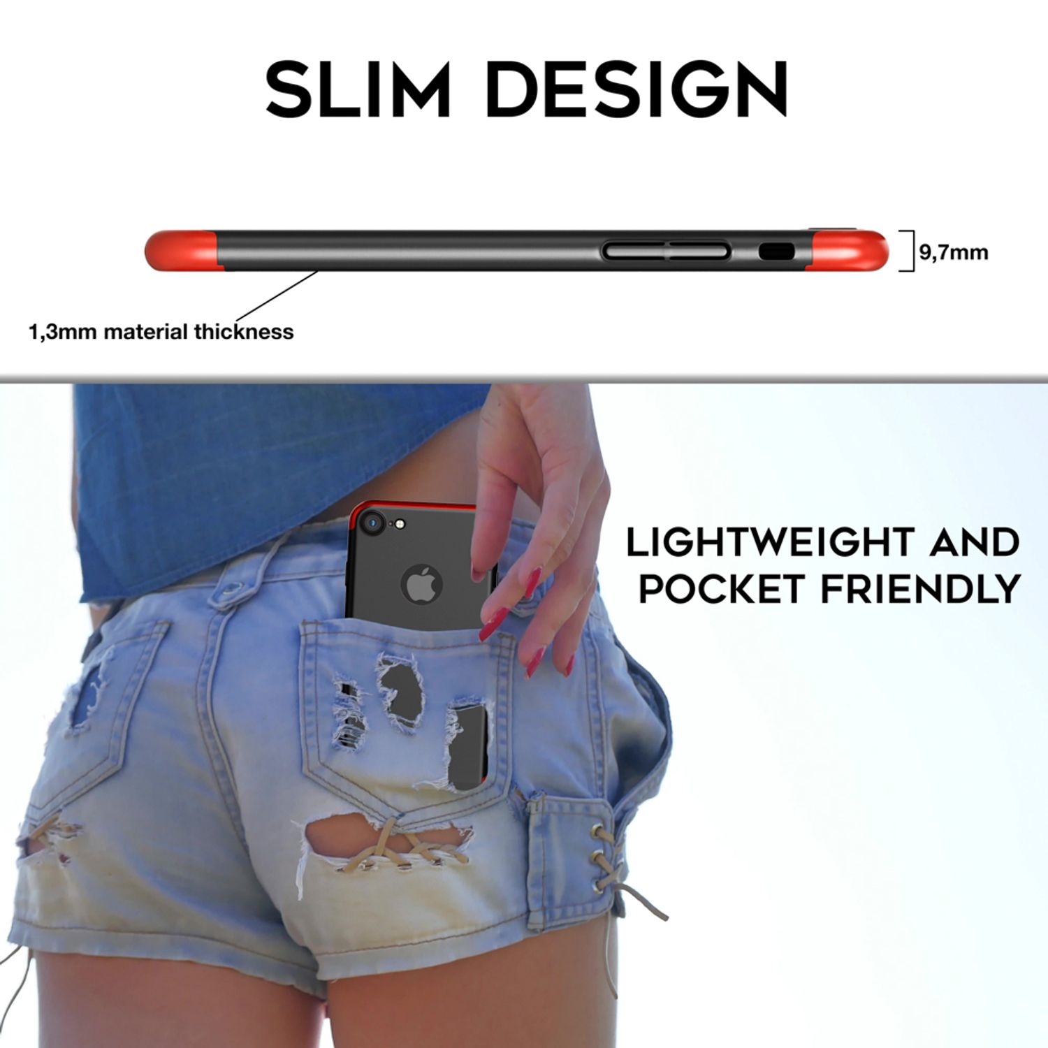 NALIA alhliða símahulstur sem passar við iPhone 7, 360° tvöföld vörn með skjávörn, hörðu hulstri fyrir stuðara, 2 í 1 hulstur, bakhlið og rammi