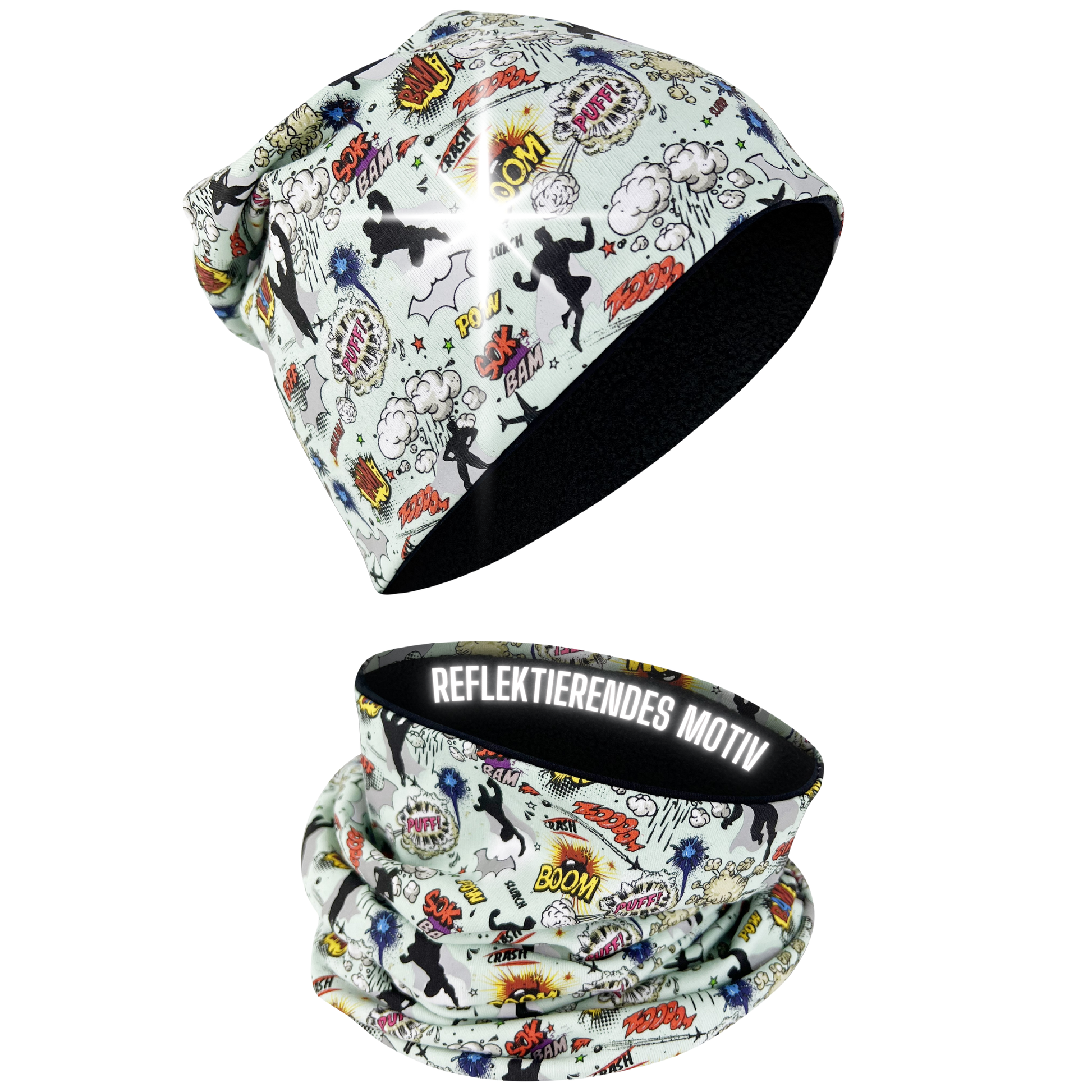 🐉 Mütze & Schal im Set – mit reflektierendem Drachen-Motiv