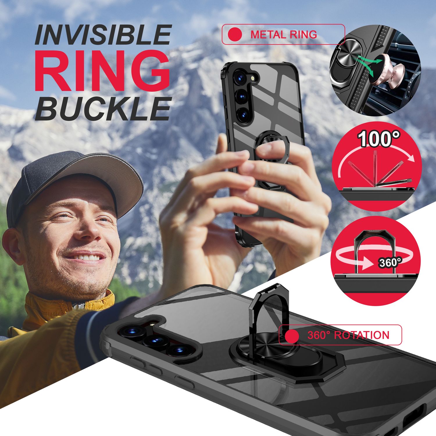 Hringlaga hulstur fyrir Samsung Galaxy S23, tvöfaldur skjárvörn og myndavélarvörn, svart