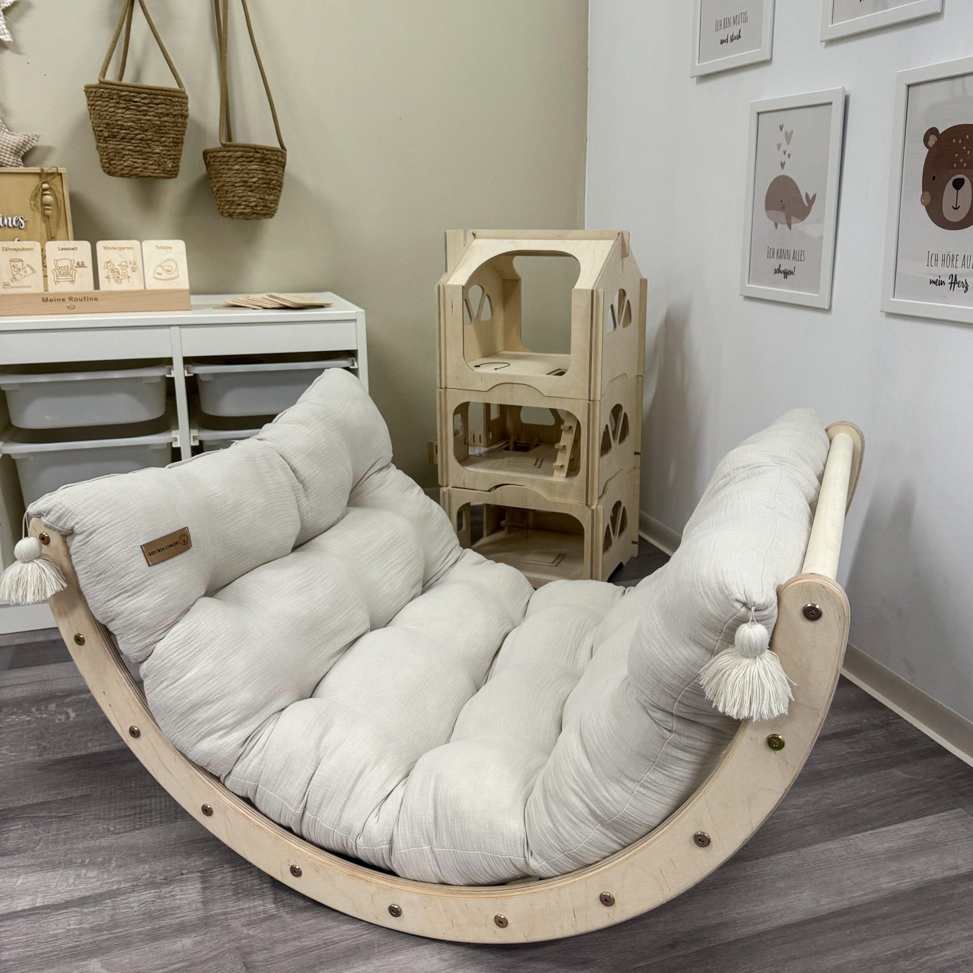 Der nachhaltige Kletterbogen aus FSC-zertifiziertem Holz ist die perfekte Herausforderung für kleine Entdecker. Schon ab Geburt nutzbar, wird er mit einem passenden Kissen zur sanften Wippe. Nach dem Emmi Pikler-Ansatz inspiriert, unterstützt er die natürliche Entwicklung, Bewegungsfreude und Selbstständigkeit deines Kindes.