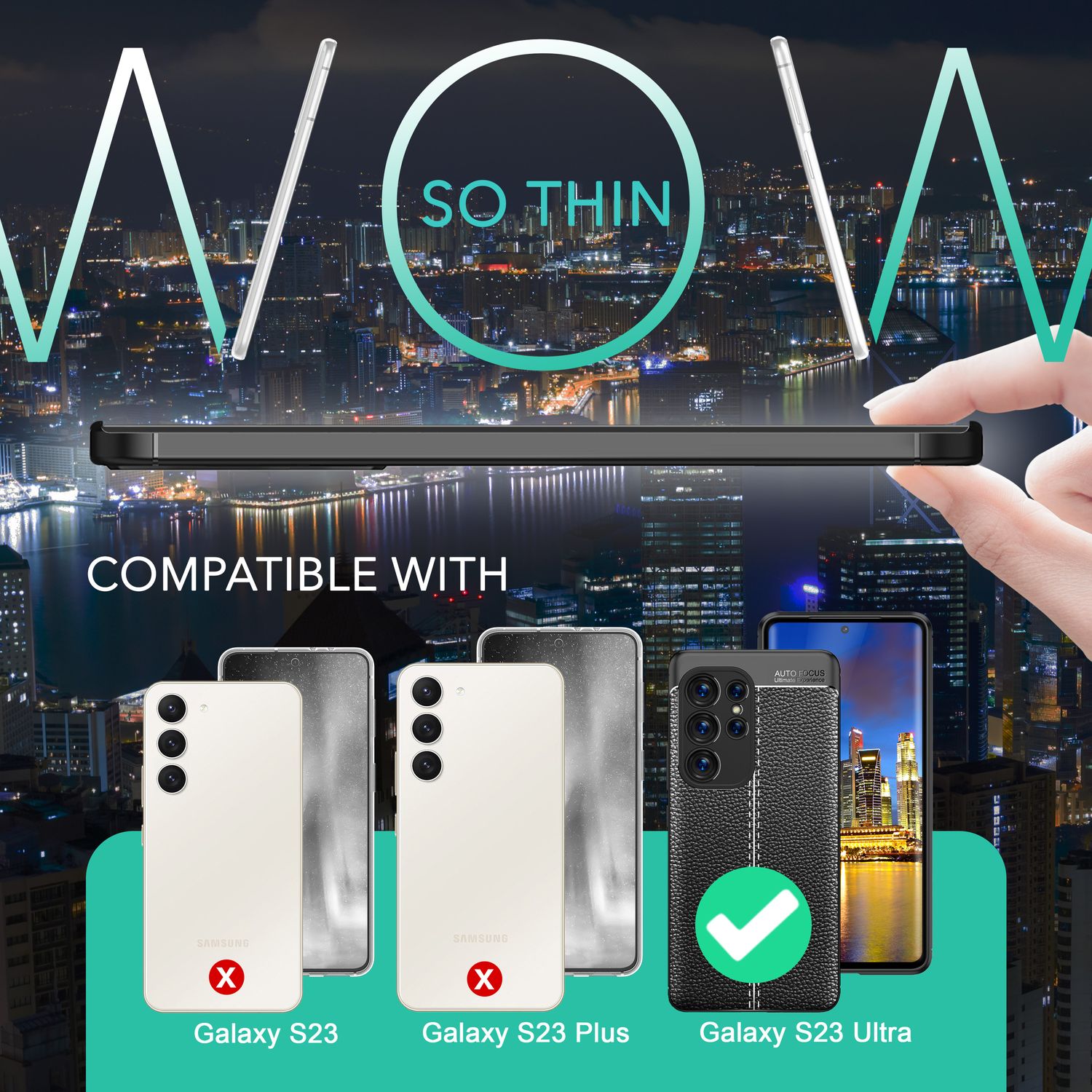 Leðurlíkt sílikonhulstur fyrir Samsung Galaxy S23 Ultra, 2x skjávörn, svart