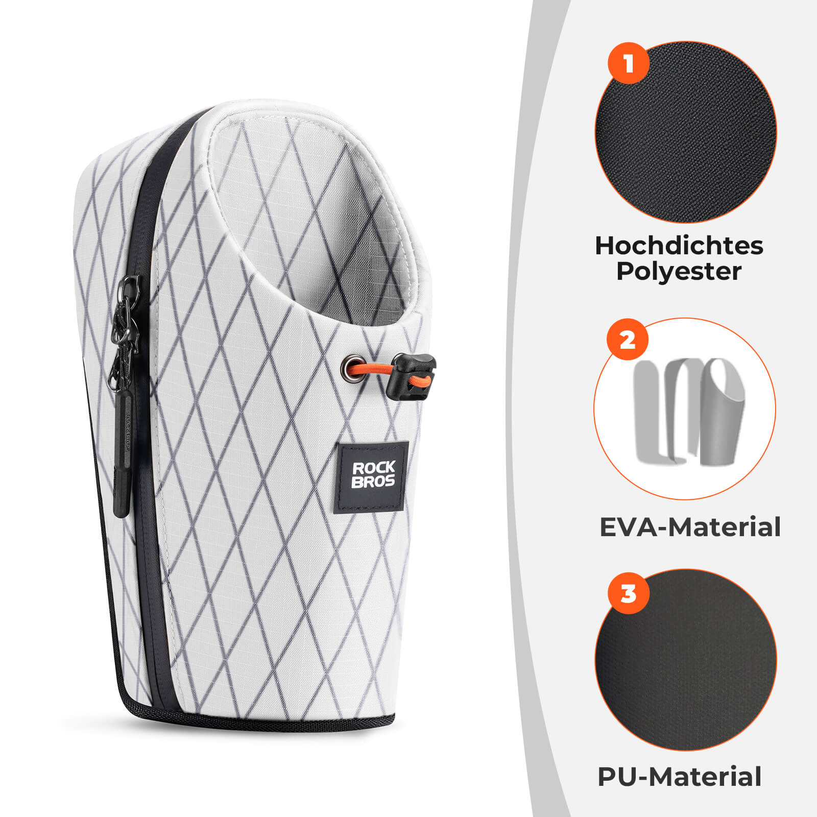 Þessi hjólataska er úr TPU, pólýester og EVA efni og einkennist af sveigjanleika, endingu og lögun. Hún verndar innihaldið áreiðanlega gegn skemmdum eða aflögun. Fáanleg í fimm litum – fyrir aukinn stíl og virkni fyrir hjólreiðabúnaðinn þinn!