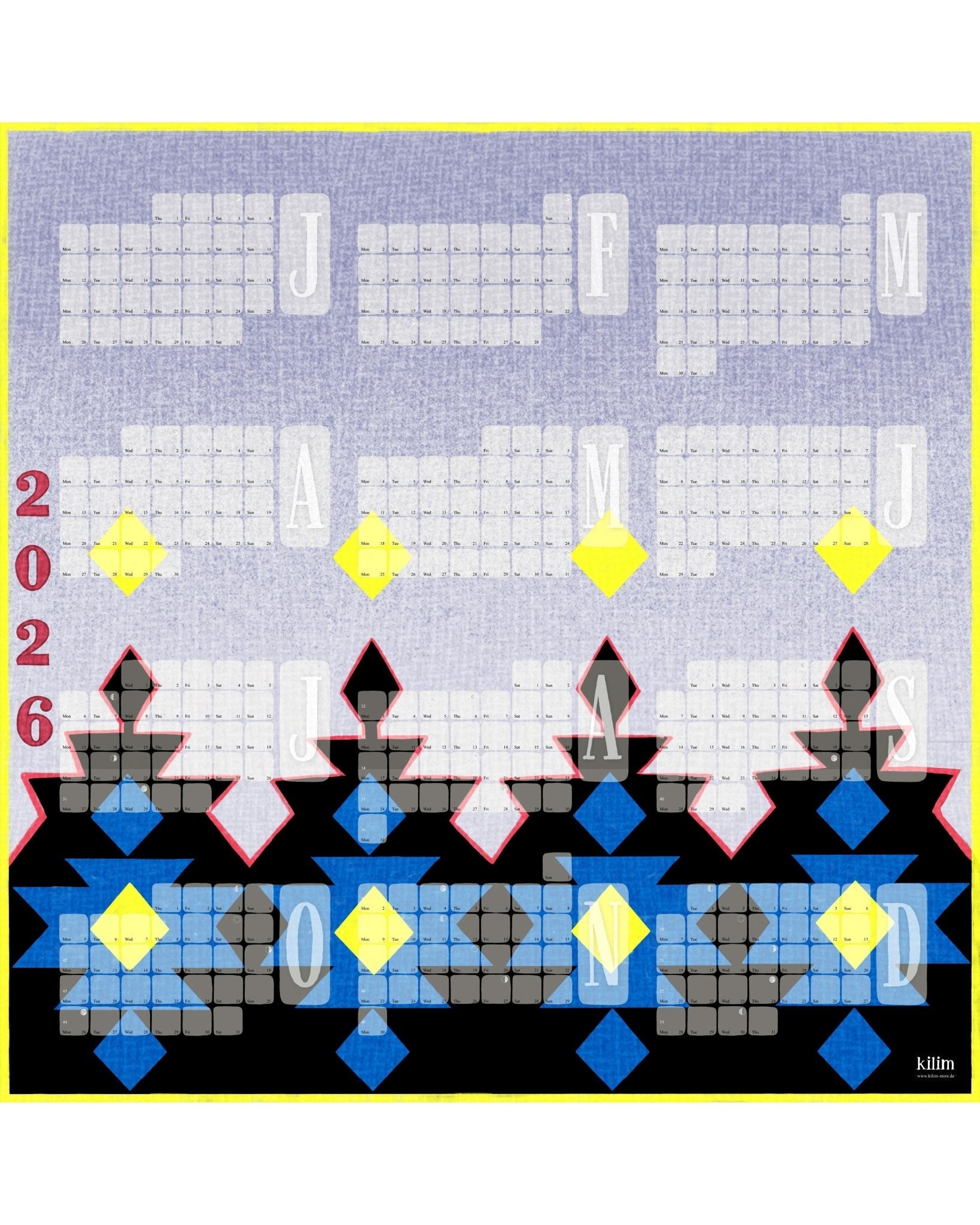 Takmörkuð upplaga af veggdagatali // Kilim Big Mountain blágrár