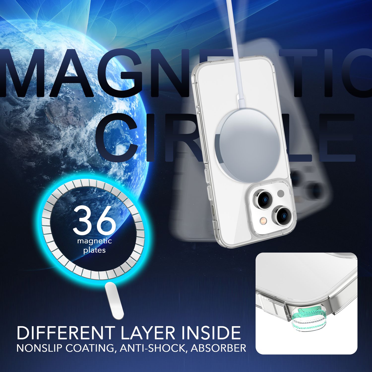 MagPower hlífðarhulstur fyrir iPhone 14, gegnsætt, rispuþolið símahulstur