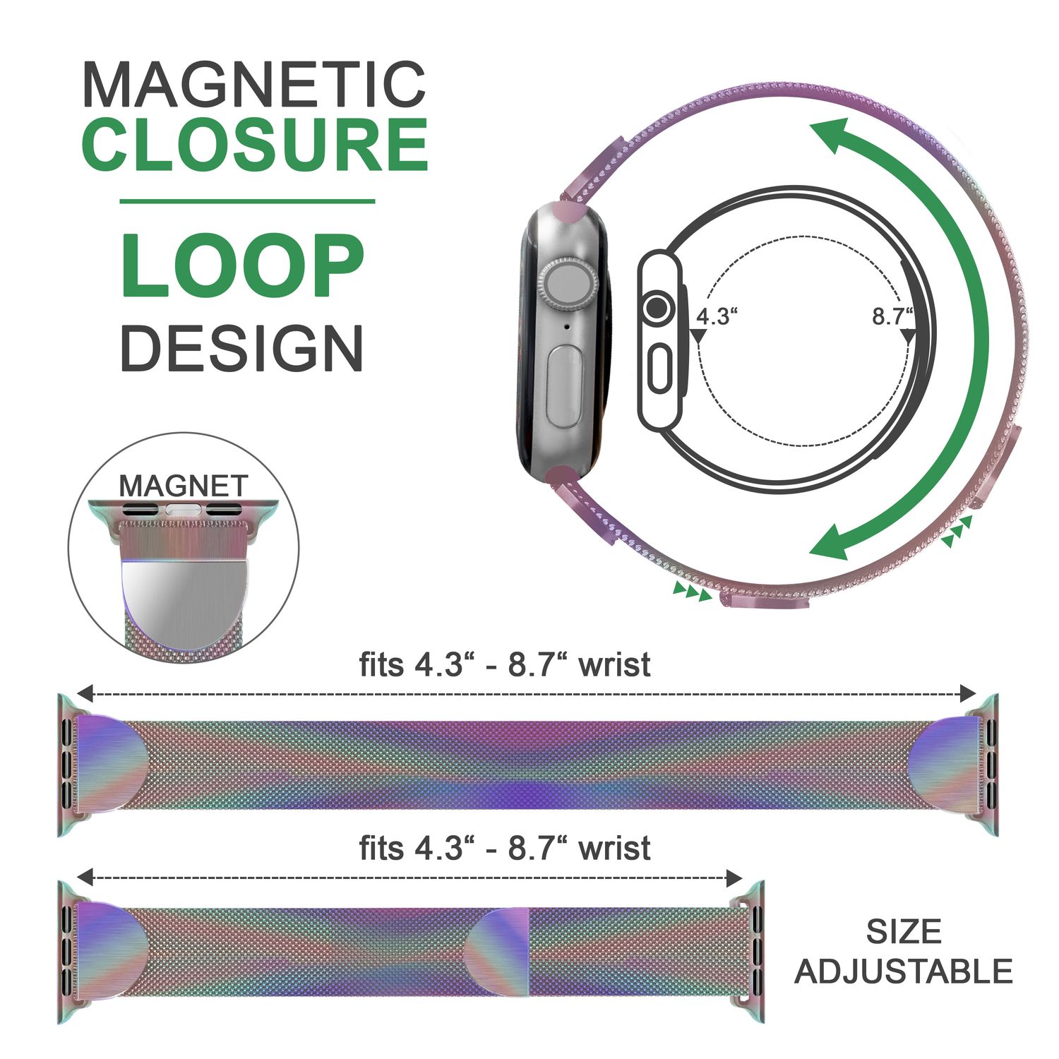 Þökk sé handhægum segullás er hægt að stilla armbandið að hvaða úlnliðsstærð sem er. Þú getur stillt það fullkomlega án þess að nota augabrúnir eða verkfæri og sterkir seglarnir halda armbandinu örugglega á sínum stað.
