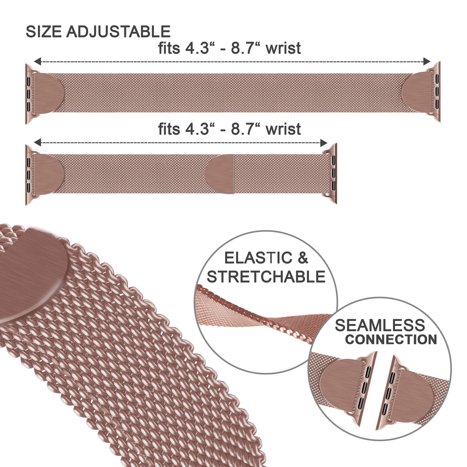 Gefðu Apple Watch úrinu þínu fágað útlit með Eterna ryðfríu stáli ólinni. Fínt málmnet faðmar úlnliðinn mjúklega og öndunarvæn hönnun tryggir þægilega notkun – fullkomið fyrir langa daga og virka stund.