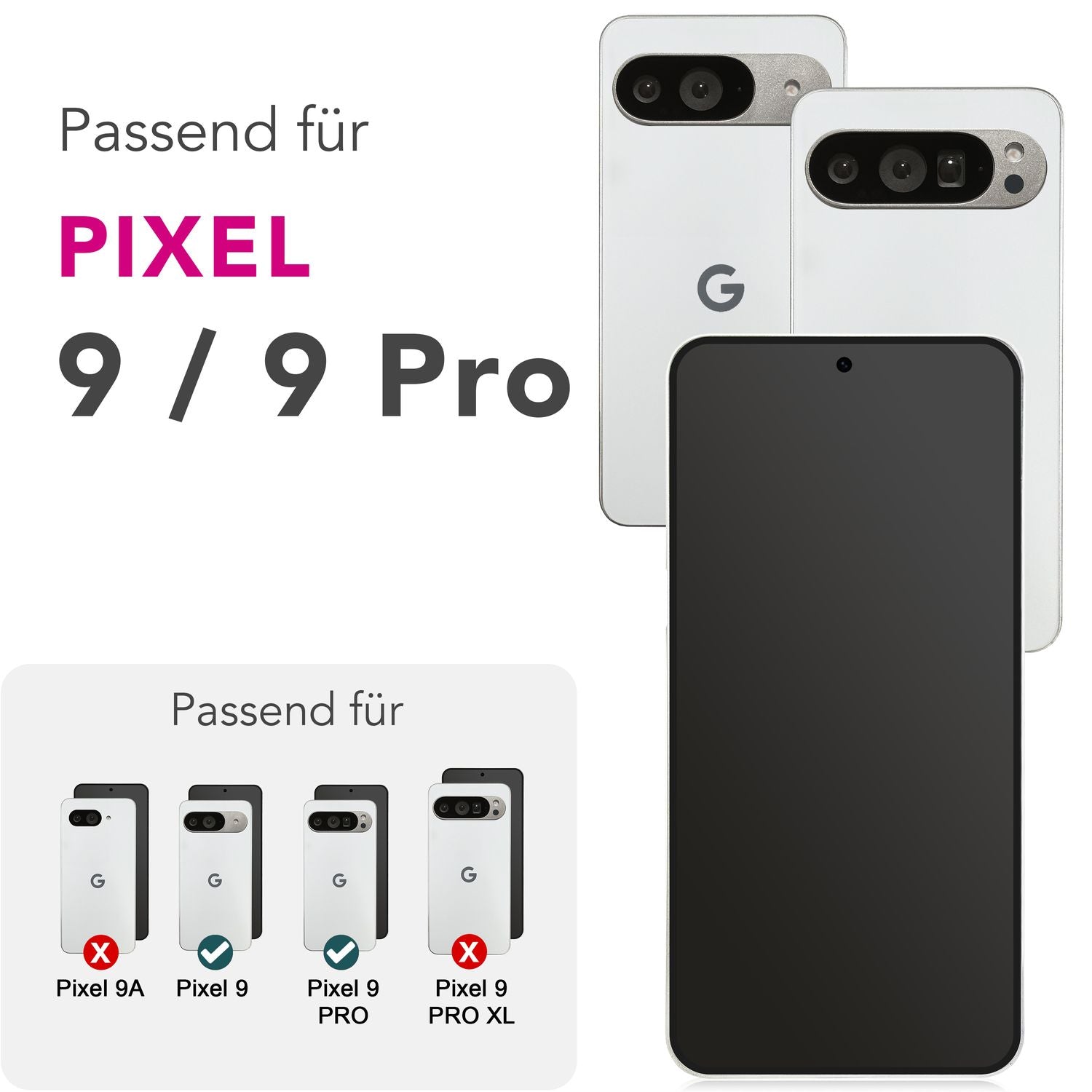NALIA ArmorGlassX fyrir Google Pixel 9 / Pixel 9 Pro gler, sett með tveimur hlífðarglerjum [9H], kristaltært með svörtum ramma, snertinæmt, rispuvarið, auðveld uppsetning