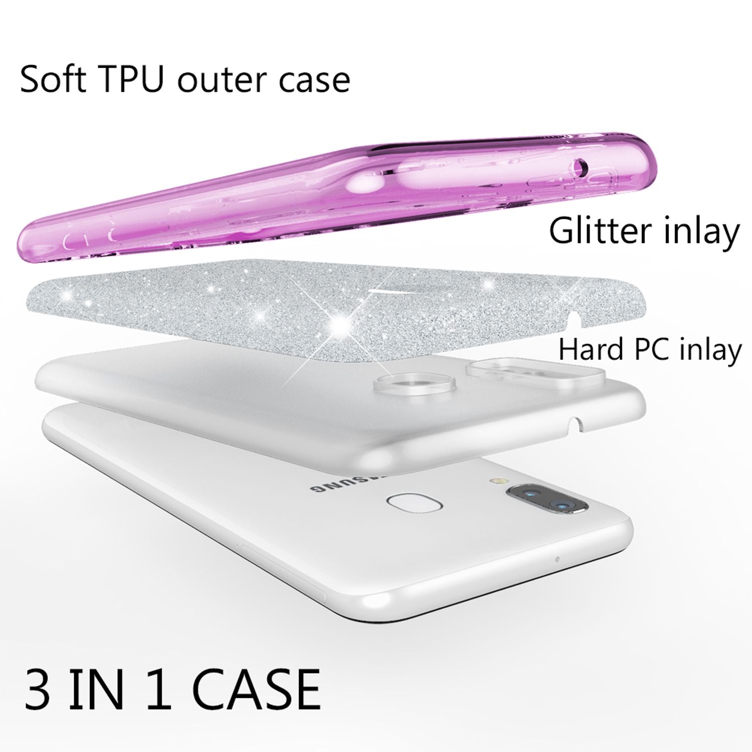 En fegurð ein og sér er ekki nóg – þetta hulstur verndar símann þinn eins og skjöldur ! Þökk sé snjallri samsetningu sveigjanlegs TPU, styrkts plasts og glæsilegrar glitrandi filmu er tækið þitt öruggt fyrir höggum og rispum. Sérstakt þéttiefni tryggir að glæsileikinn endist – hvorki flagnar né dofnar né rispar!