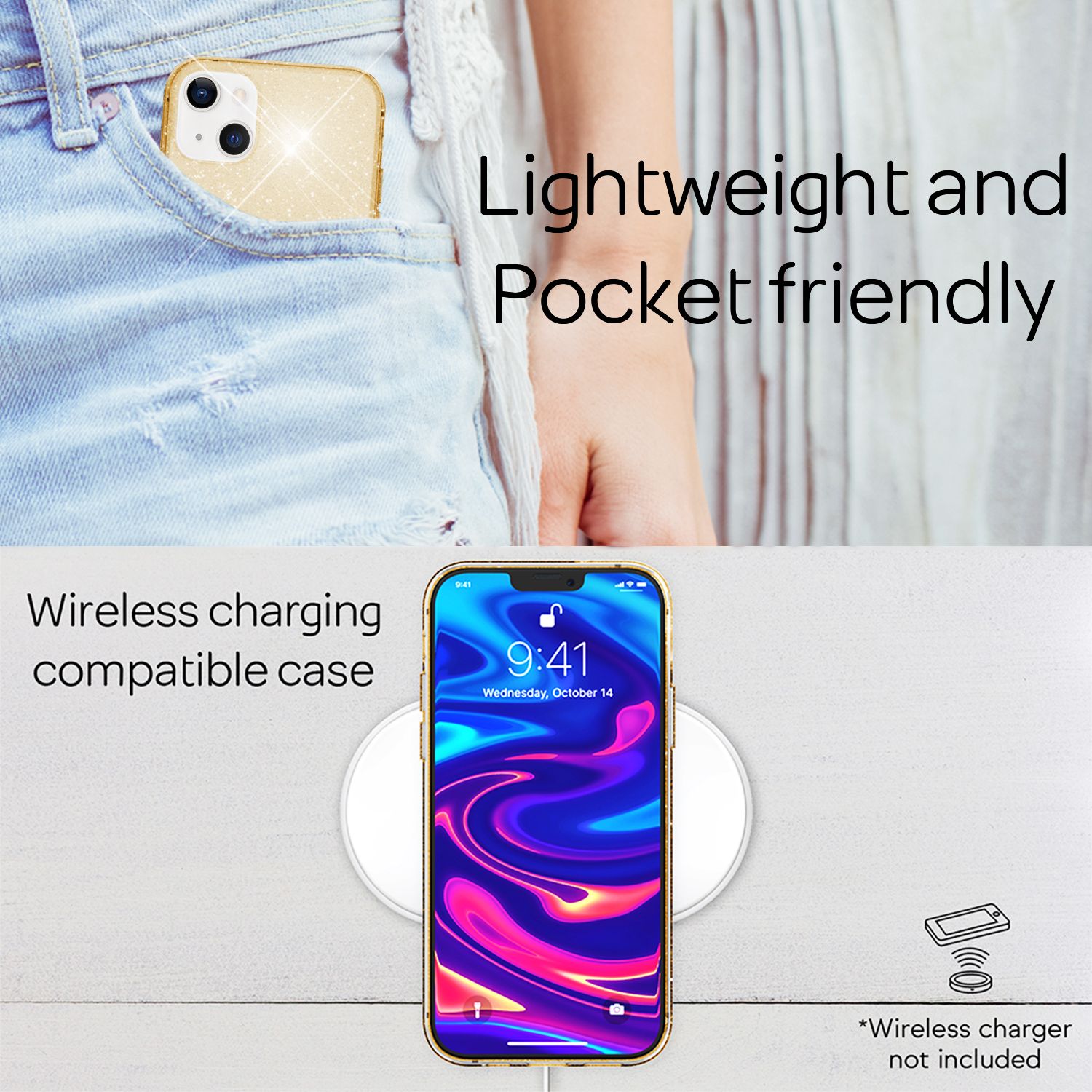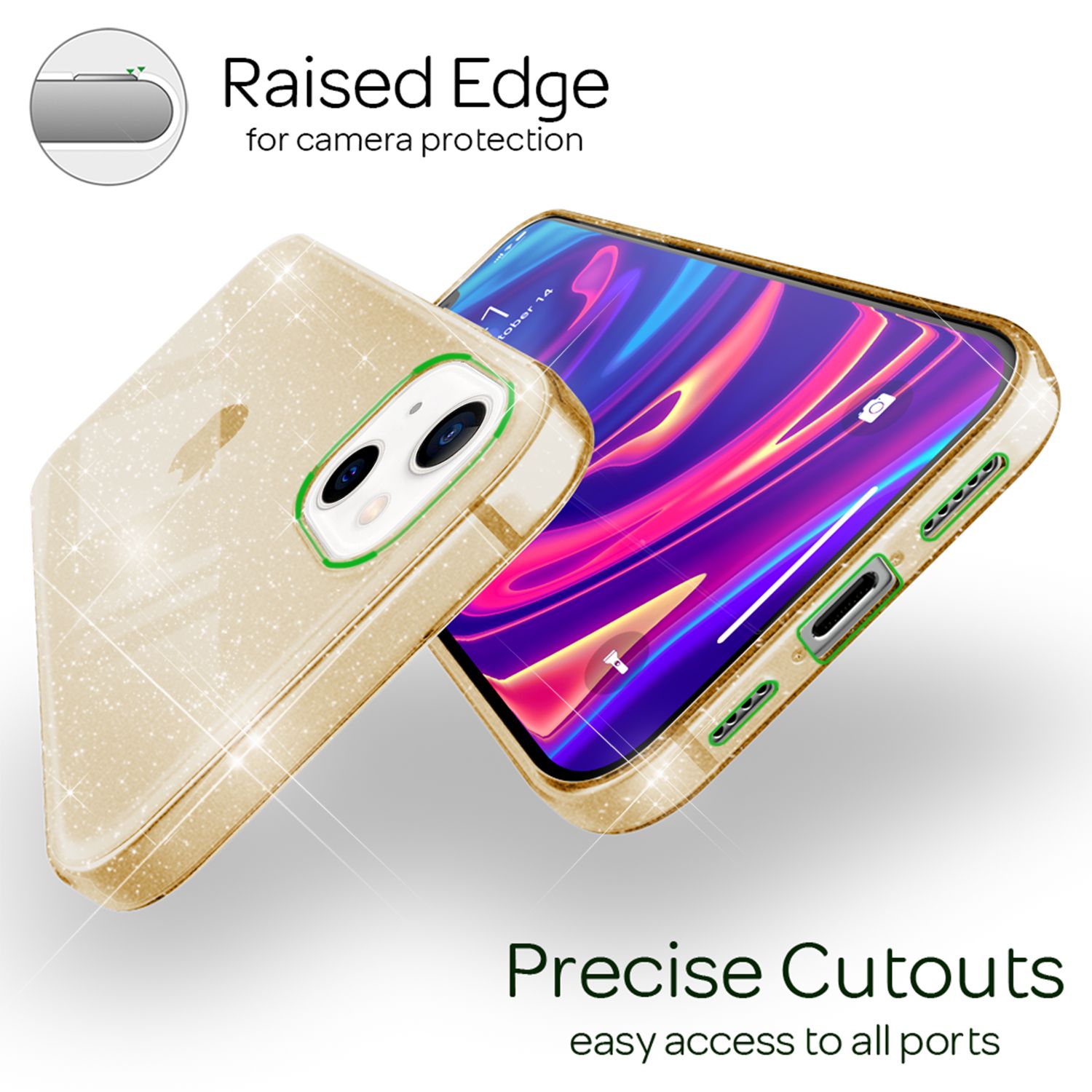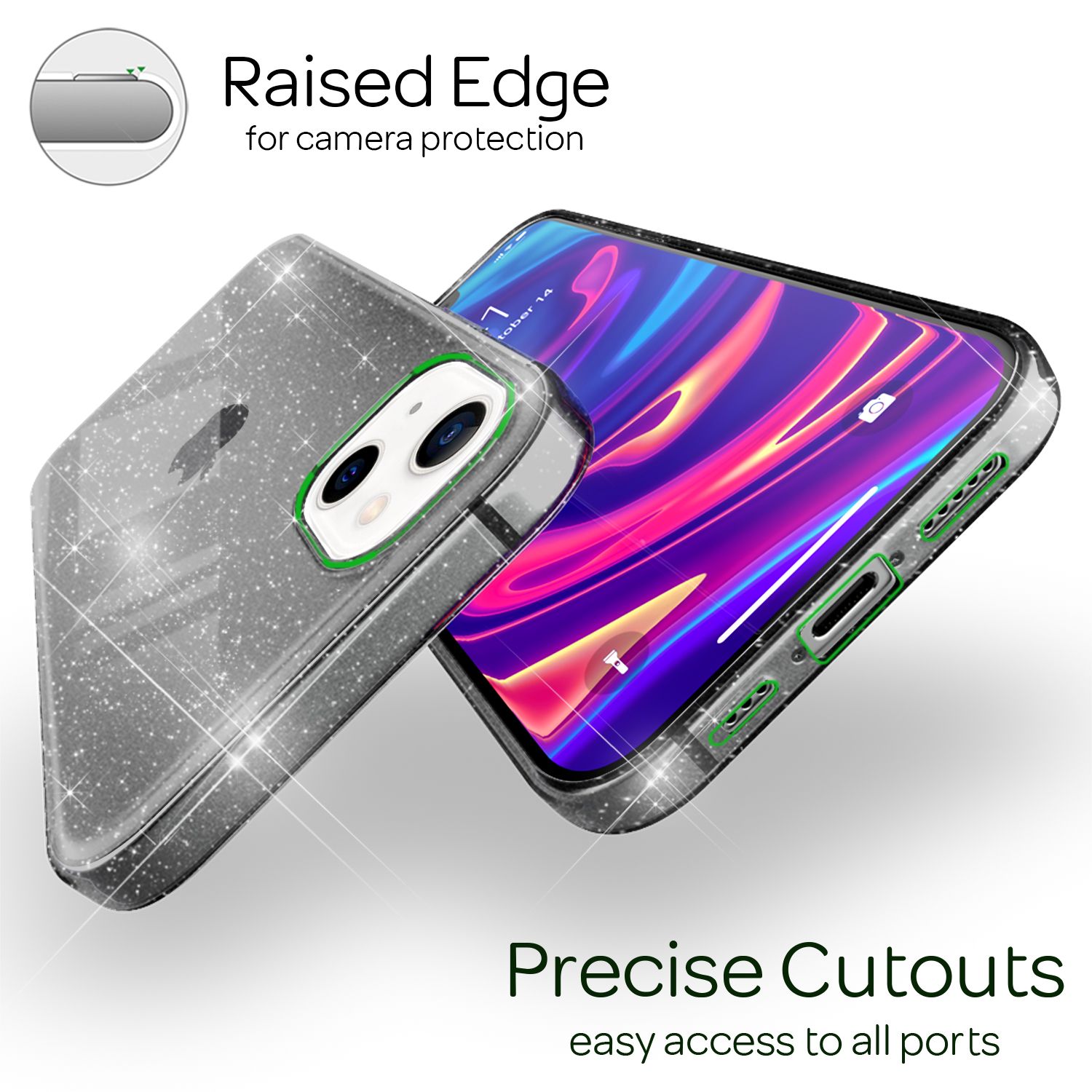 NALIA glitrandi hulstur fyrir iPhone 13 Mini, gegnsætt glitrandi símahulstur