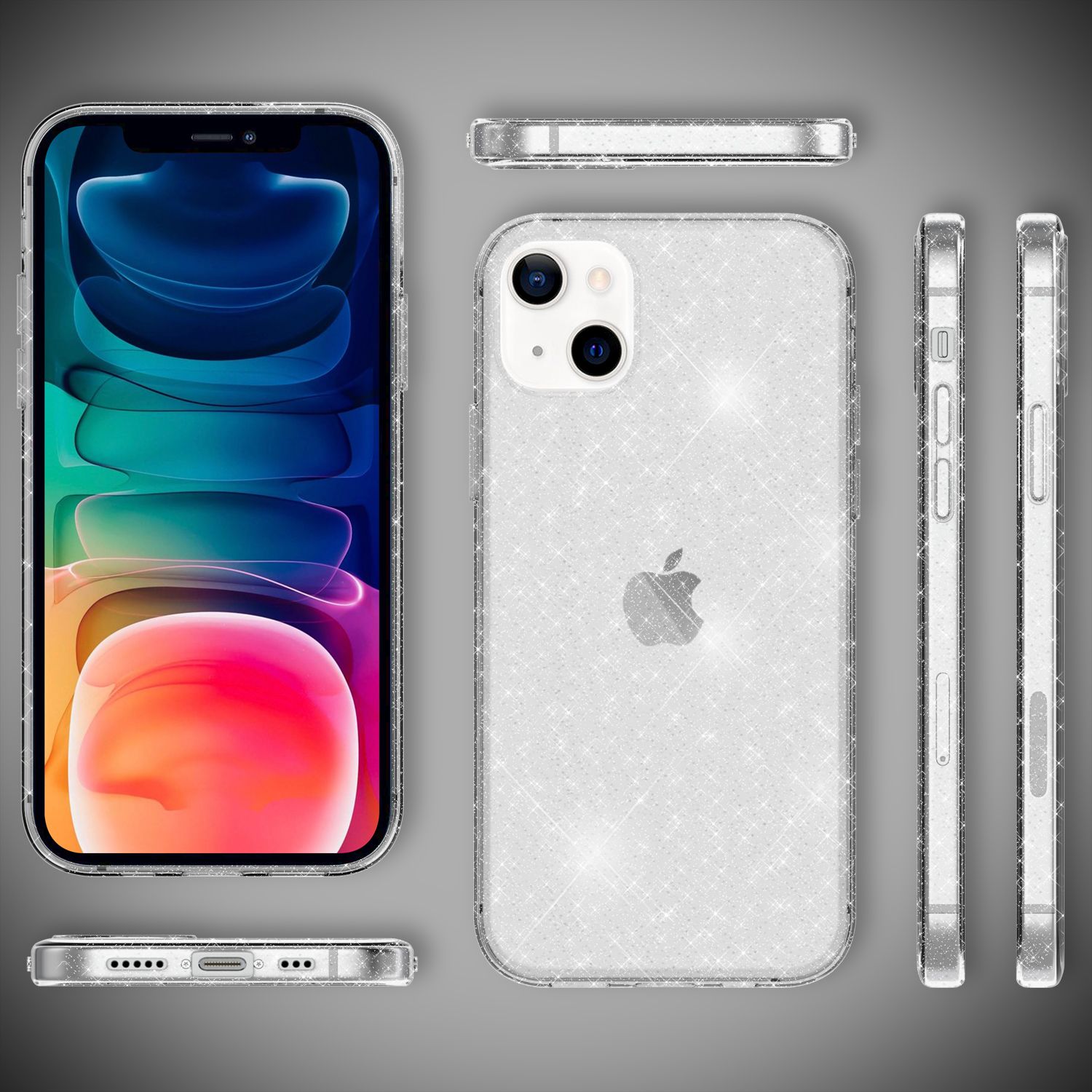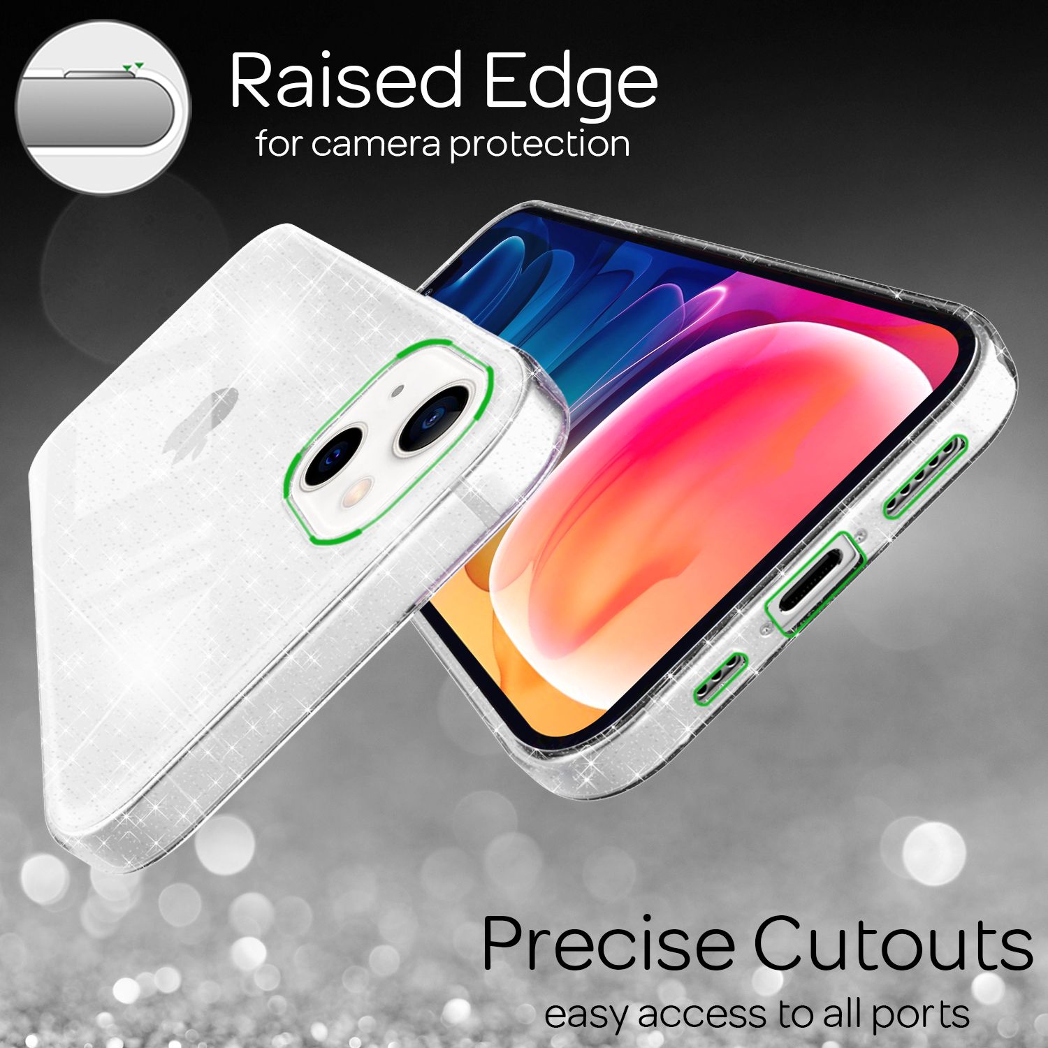 NALIA Glitrandi hulstur fyrir iPhone 13, gegnsætt glitrandi símahulstur með stuðara