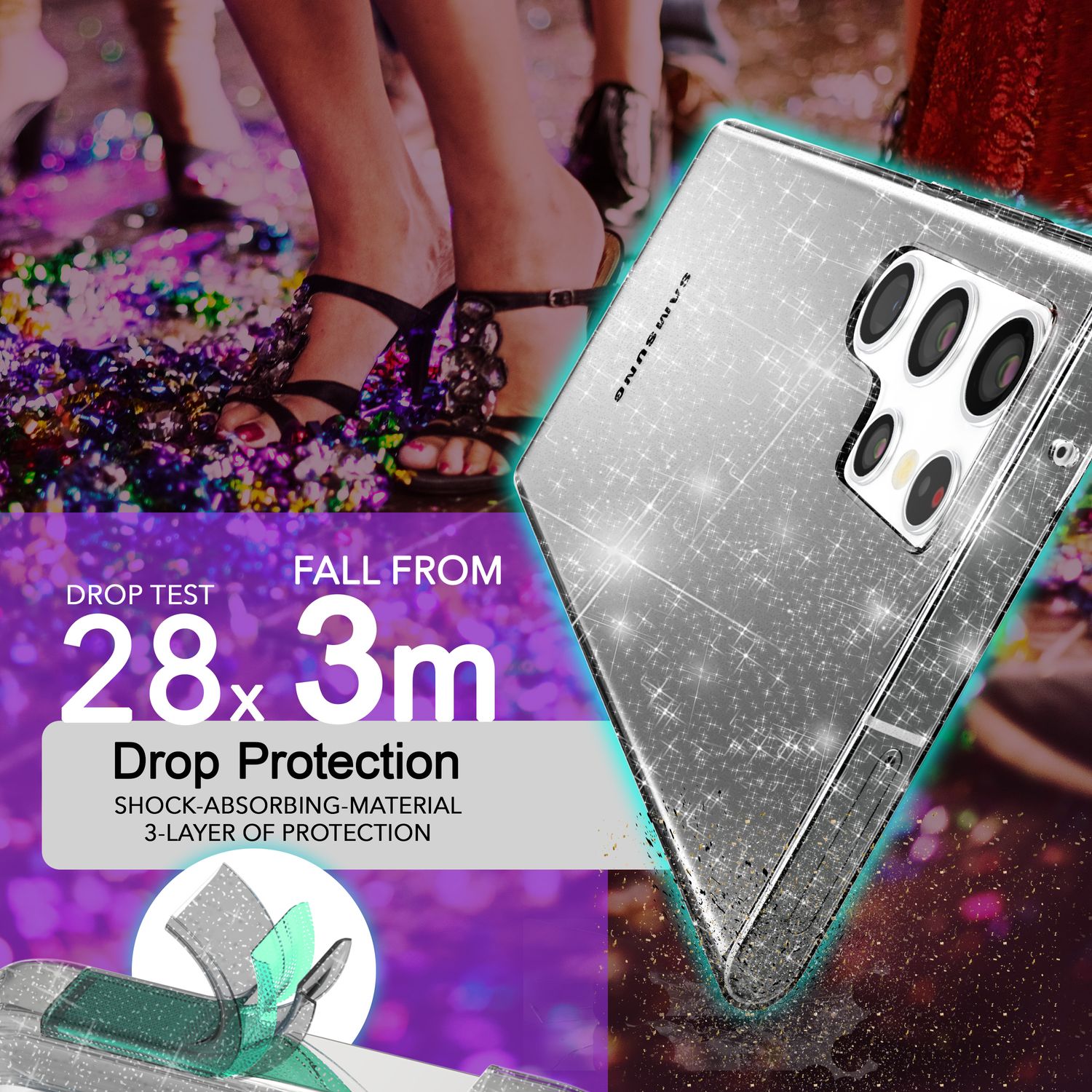 NALIA glitrandi verndarhulstur fyrir Samsung Galaxy S24 Ultra, gegnsætt sílikon símahulstur með demöntum og glitrandi gljáa
