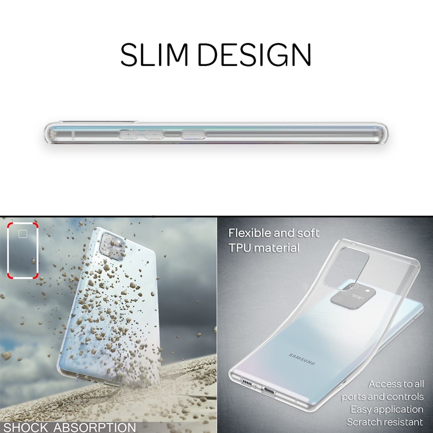 NALIA símahulstur fyrir Samsung Galaxy S10 Lite, gegnsætt hlífðarhulstur