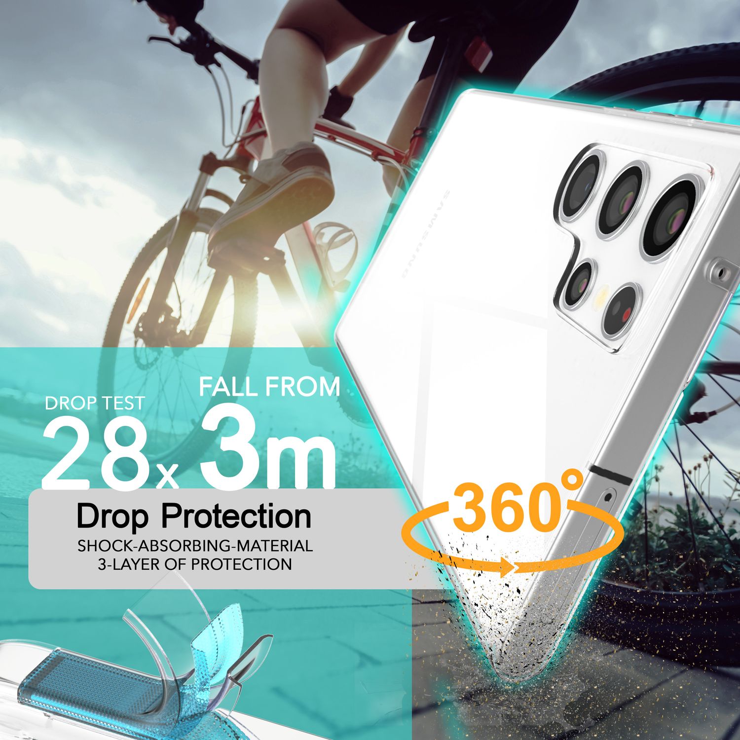 Með 360Guard færðu hulstur sem nær yfir allan líkamann og sameinar óaðfinnanlega vernd og glæsilegt gegnsæi. Það er hannað til að hámarka endingu og verndar tækið þitt áreiðanlega gegn höggum, rispum og utanaðkomandi áhrifum – án þess að fela hönnunina.