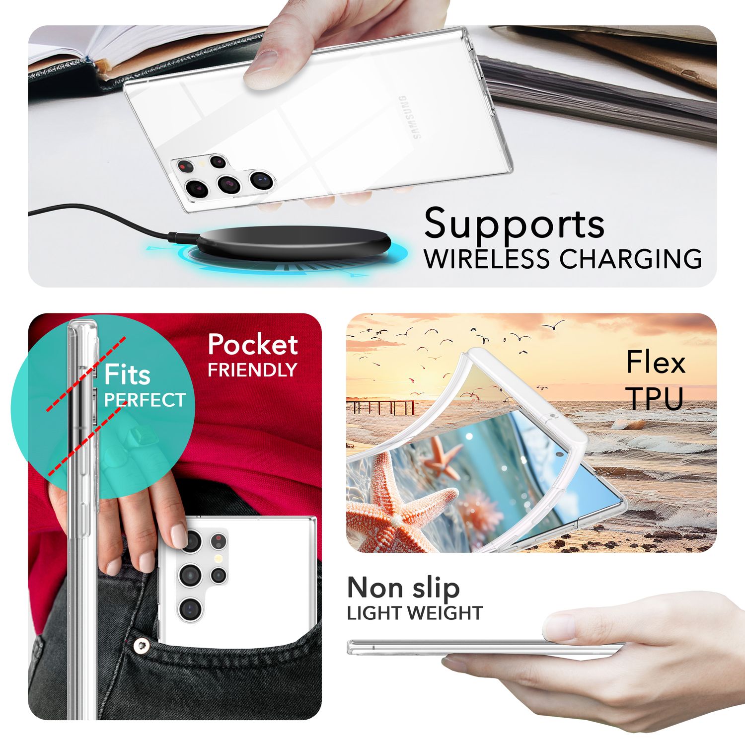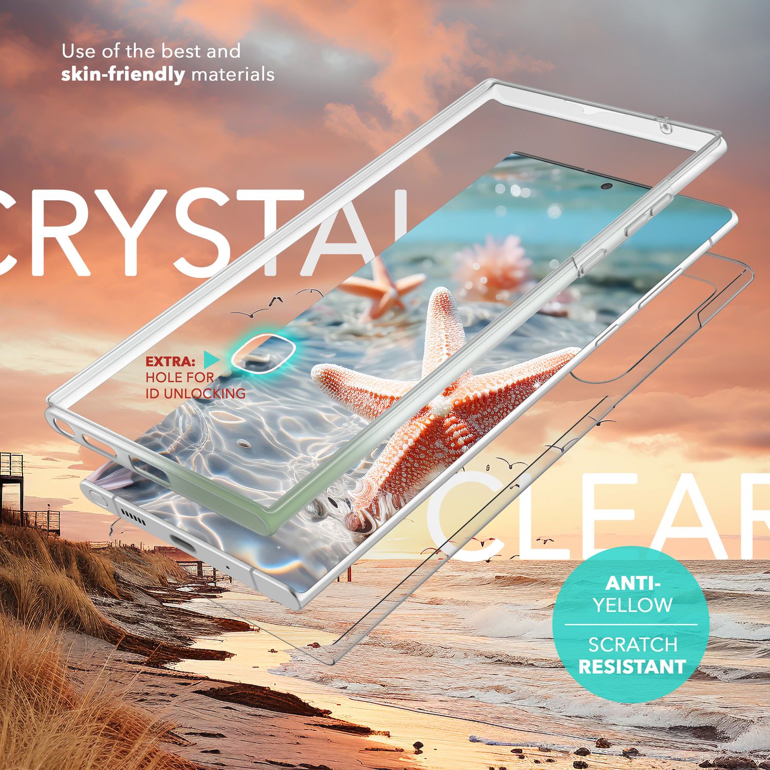 Þökk sé nýstárlegri tækni gegn gulnun helst hulstrið gegnsætt lengur og kemur í veg fyrir óæskilega mislitun. Sérstök húðun verndar einnig gegn fingraförum, ryki og rispum, þannig að tækið þitt lítur alltaf út eins og nýtt .