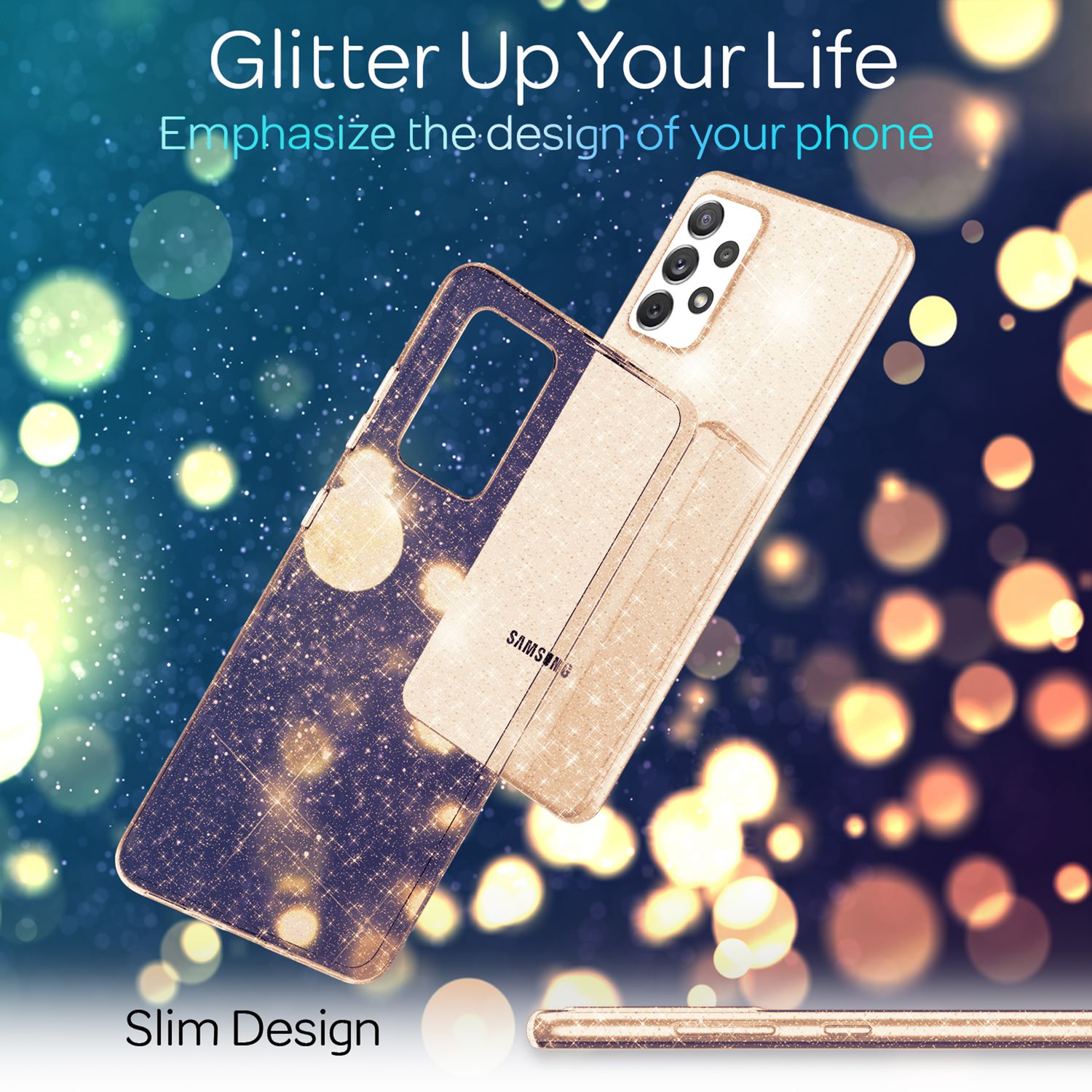 NALIA Glært glitrandi hulstur fyrir Samsung Galaxy A53, gegnsætt, gulnar ekki