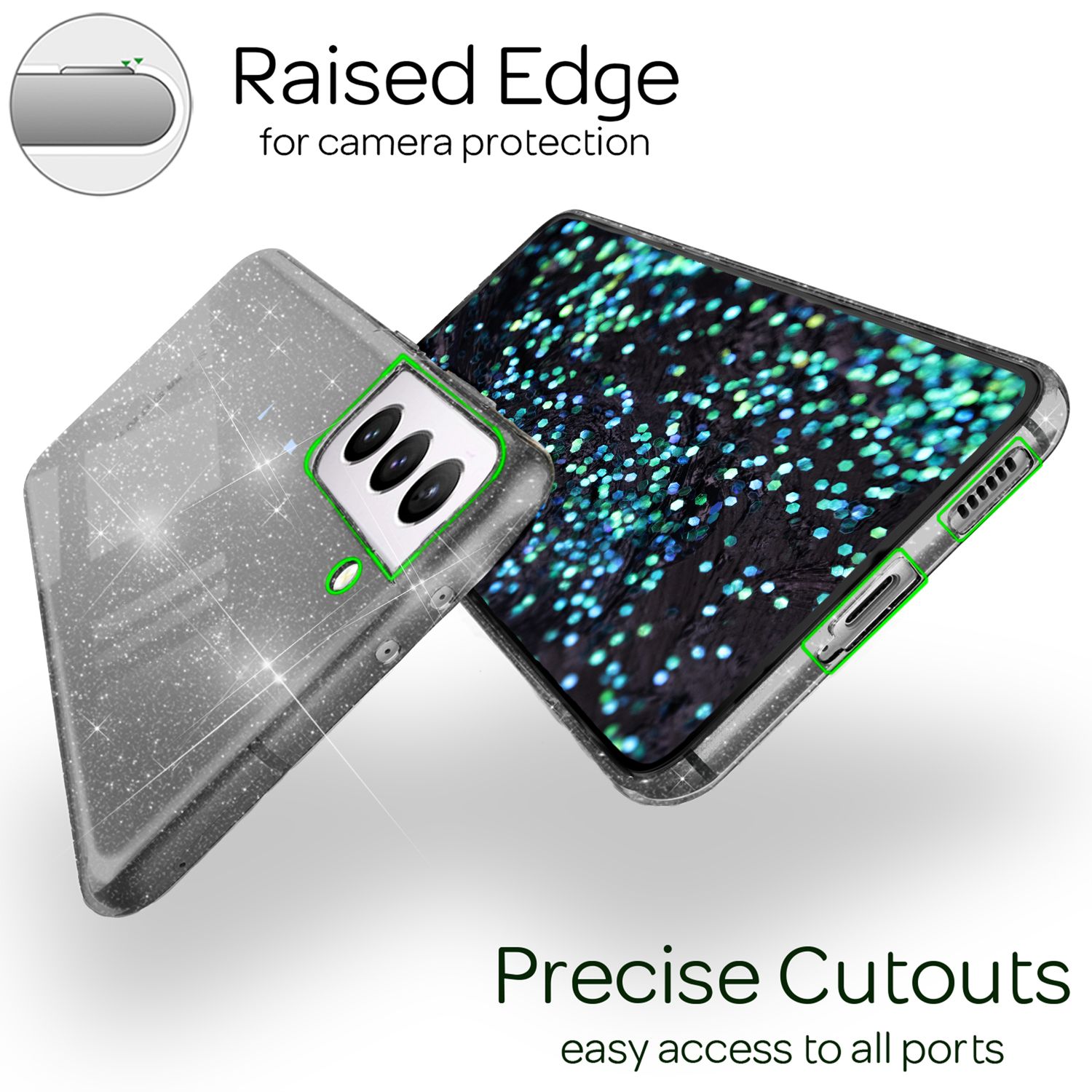 Með NALIA Dazzlin glitrandi hulstrinu setur þú þig í spor annarra – glæsilegt, glæsilegt og algjörlega einstakt!