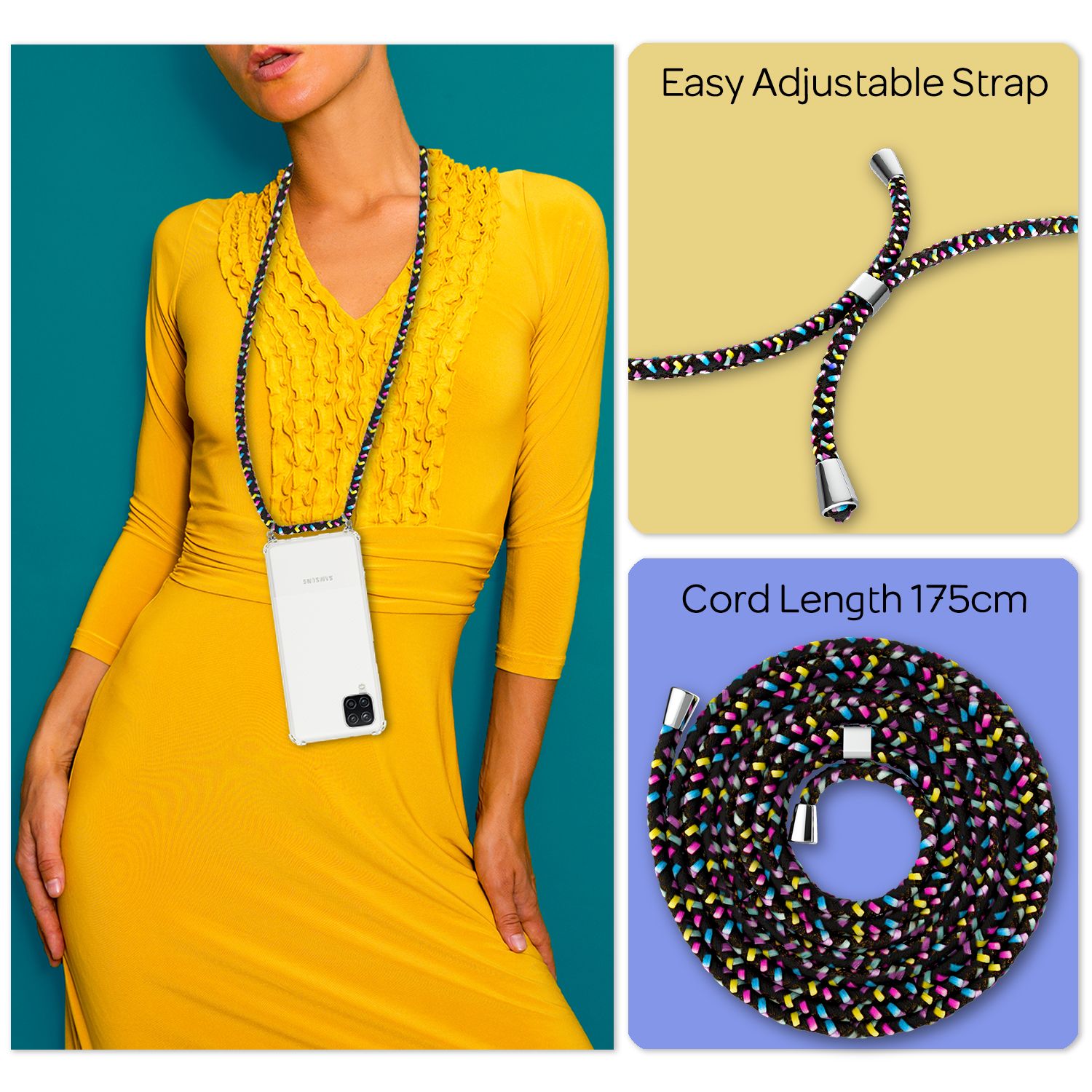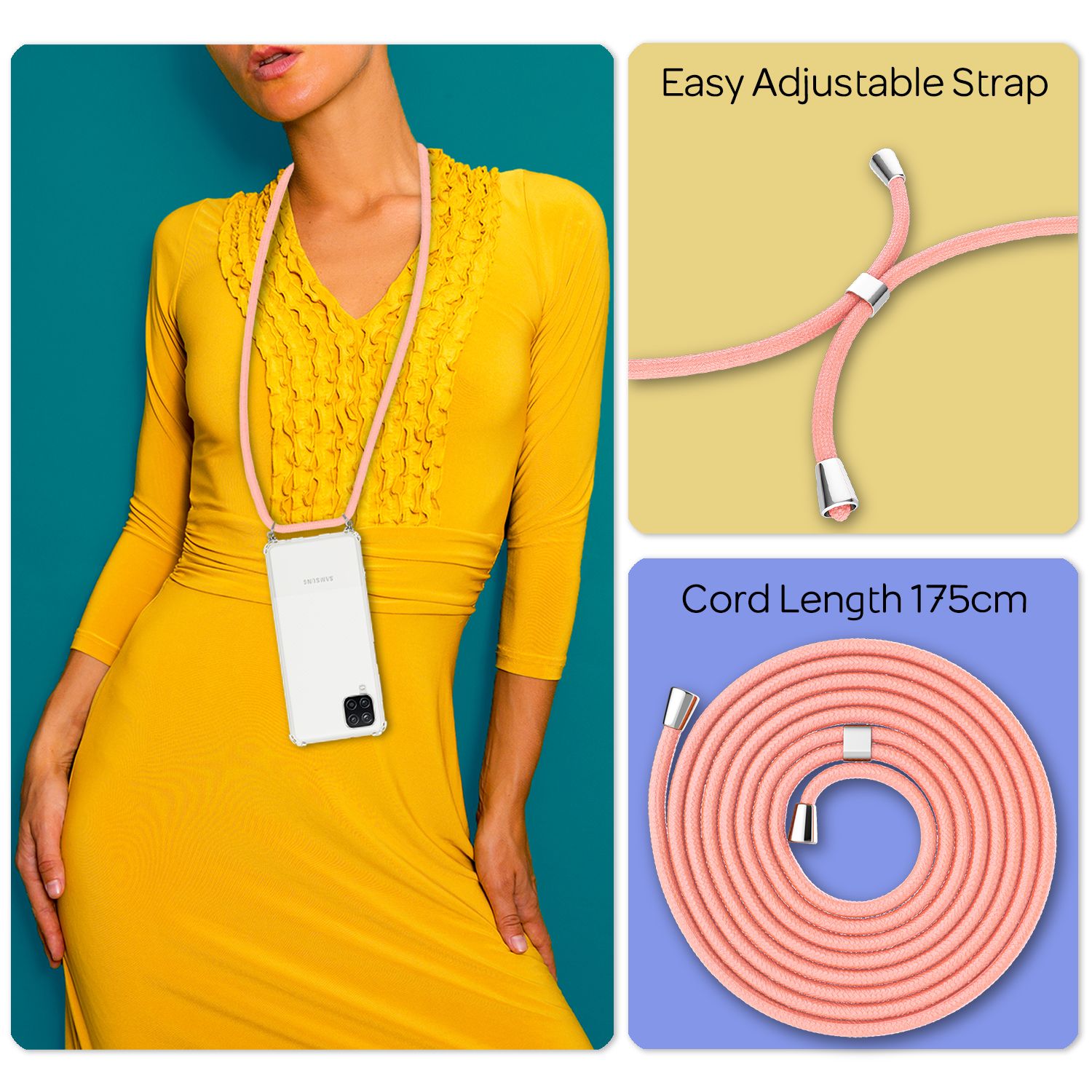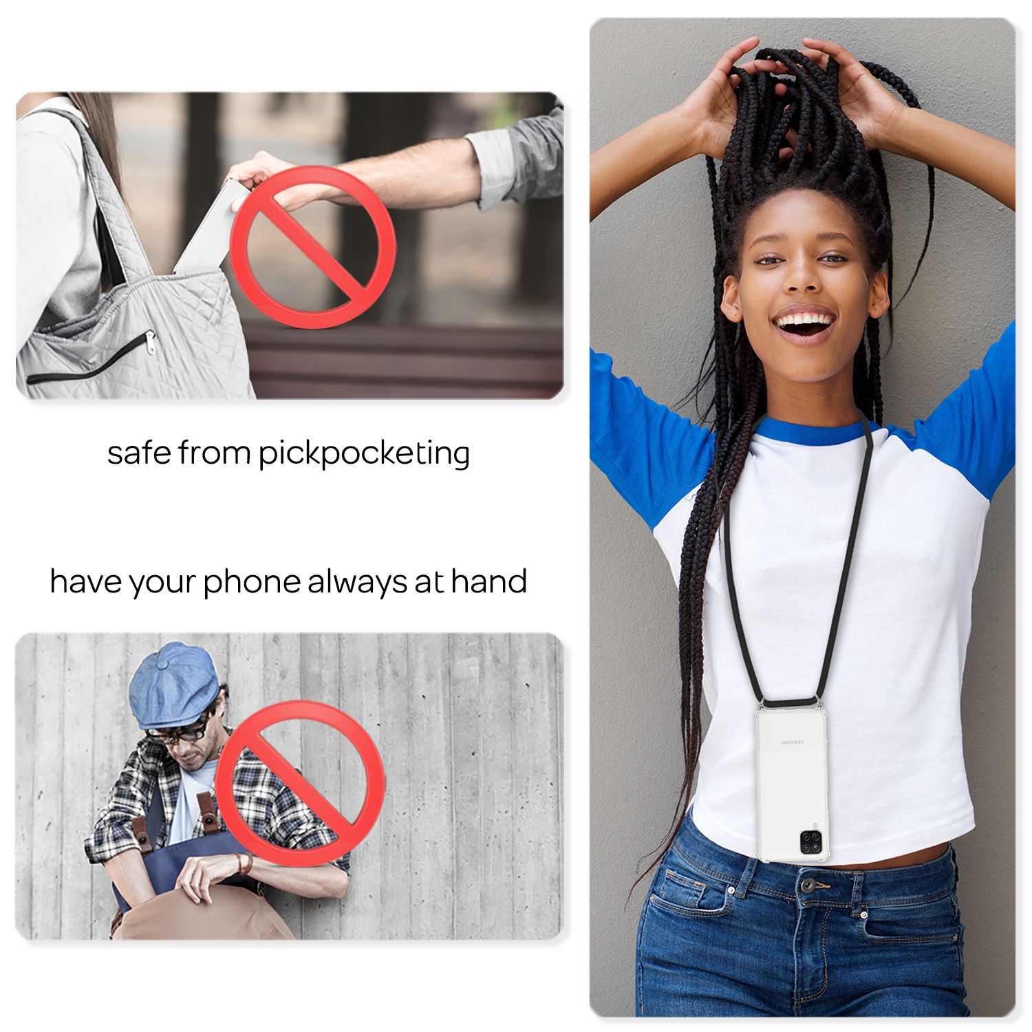 NALIA gegnsætt símahulstur með keðju fyrir Samsung Galaxy A12, bandhulstur með snúru