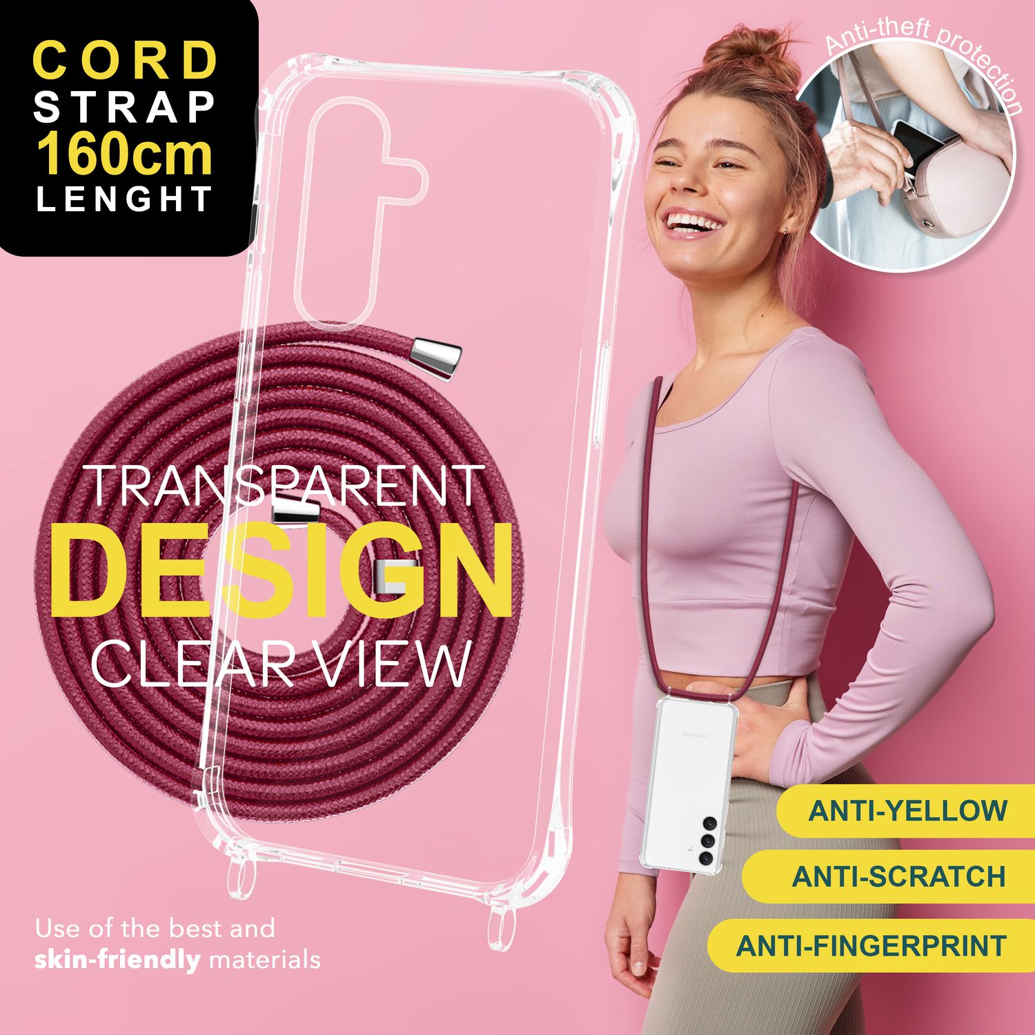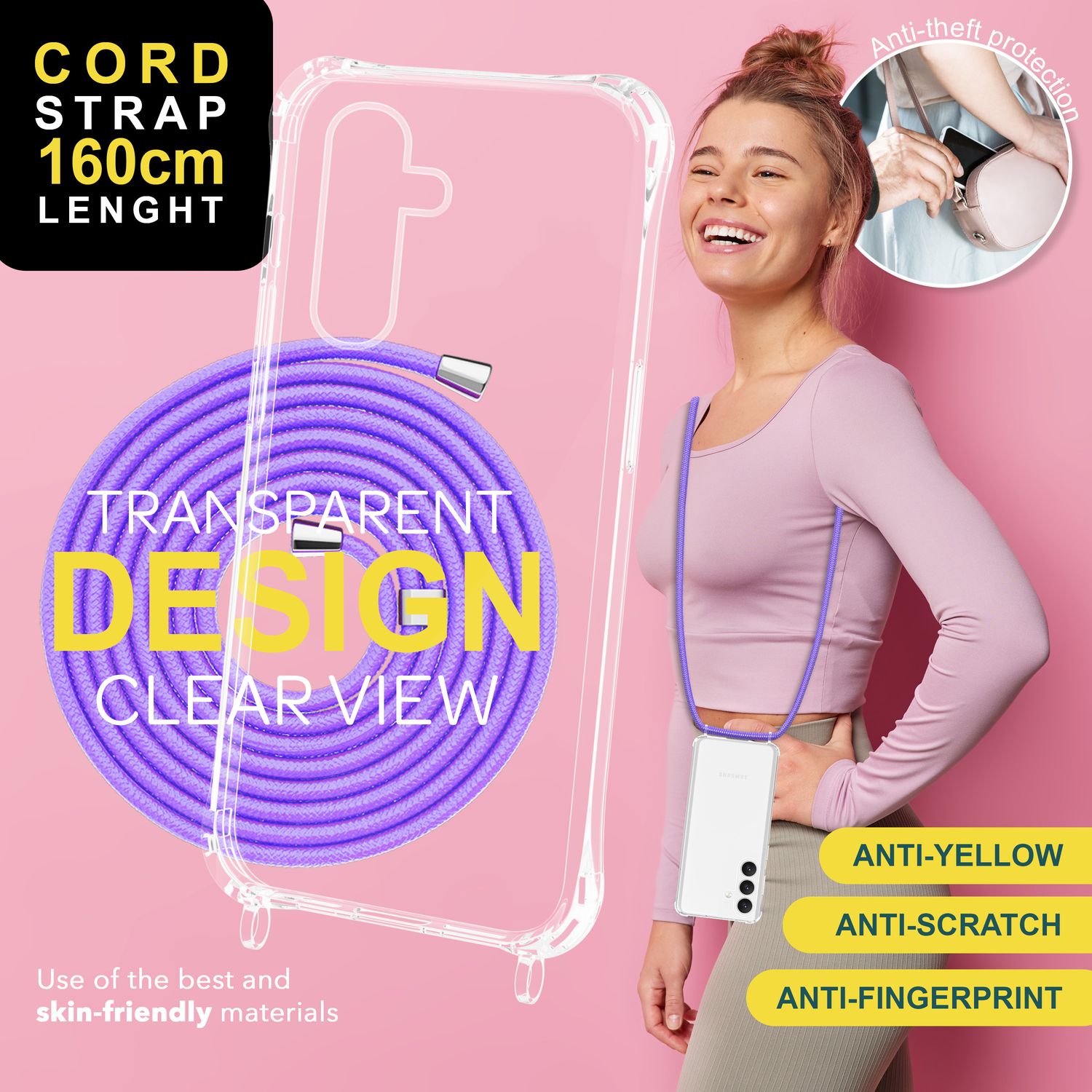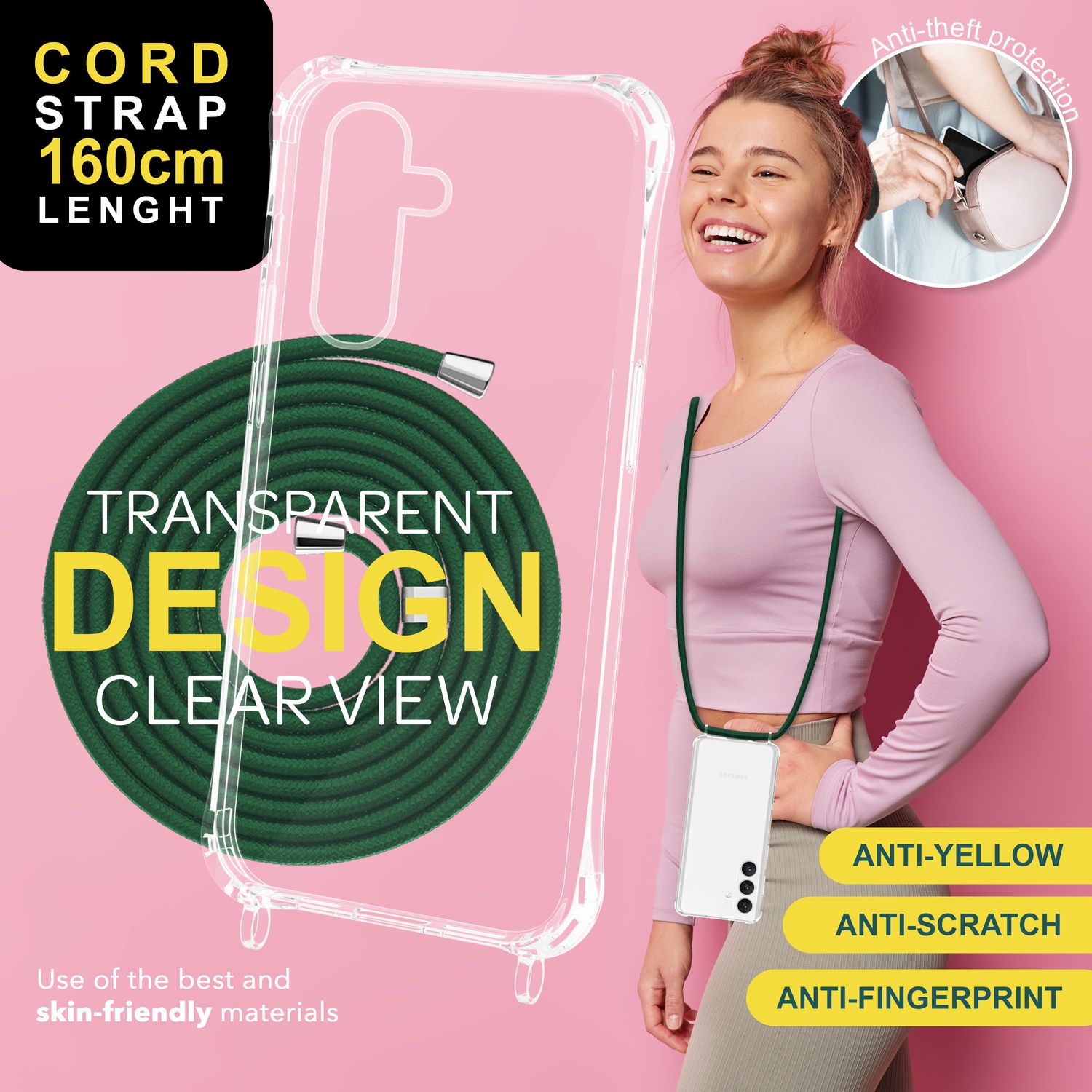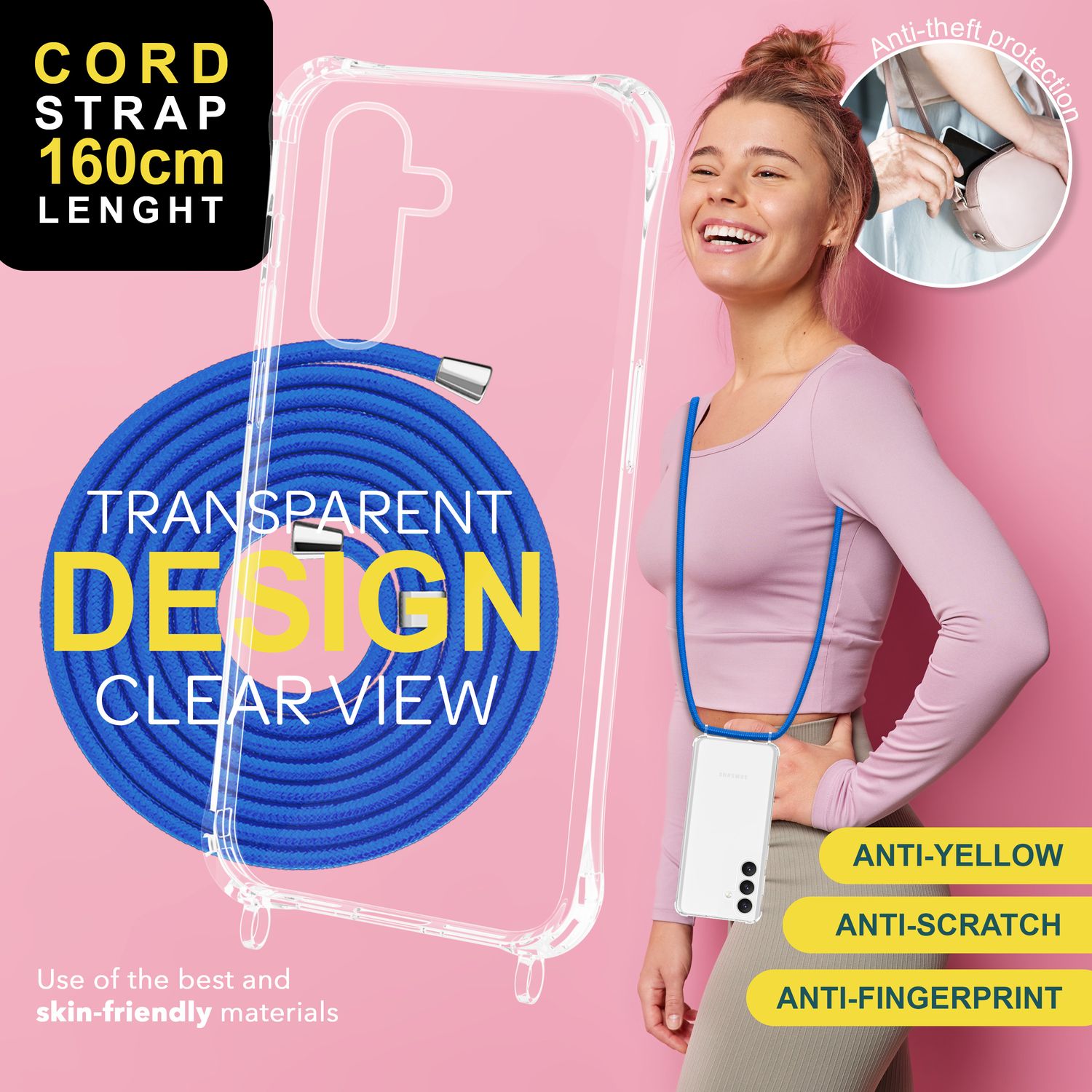 NALIA gegnsætt hlífðarhulstur með keðju fyrir Samsung Galaxy S24, gegnsætt og sterkt símahulstur með ól til að bera um hálsinn