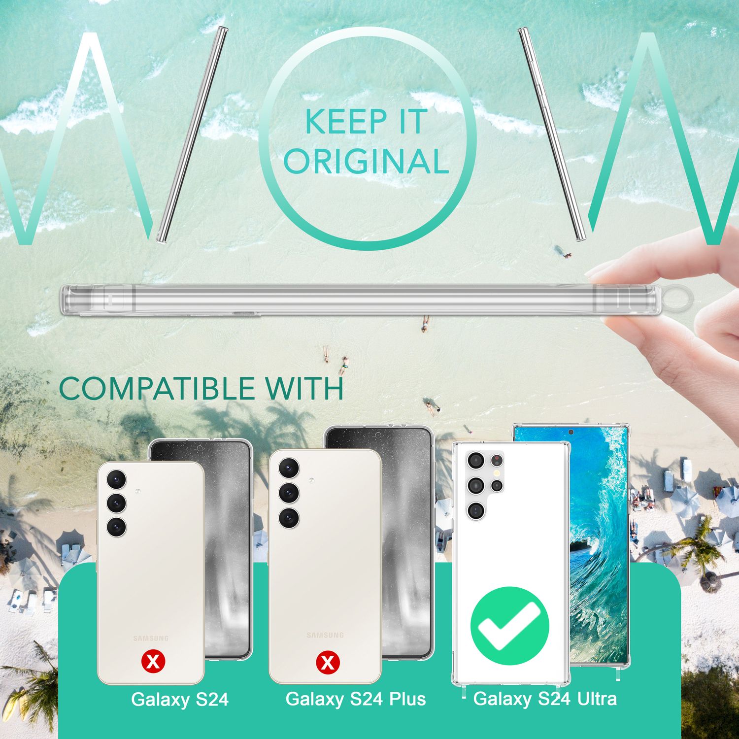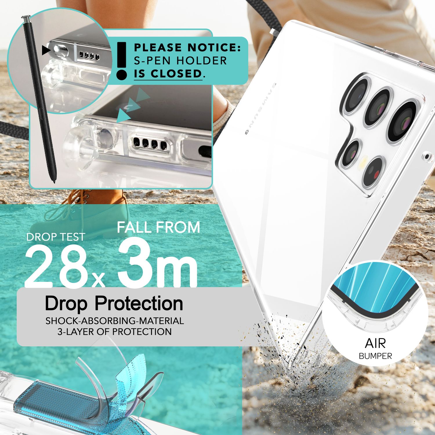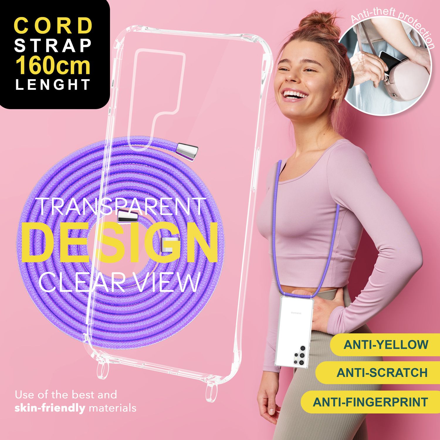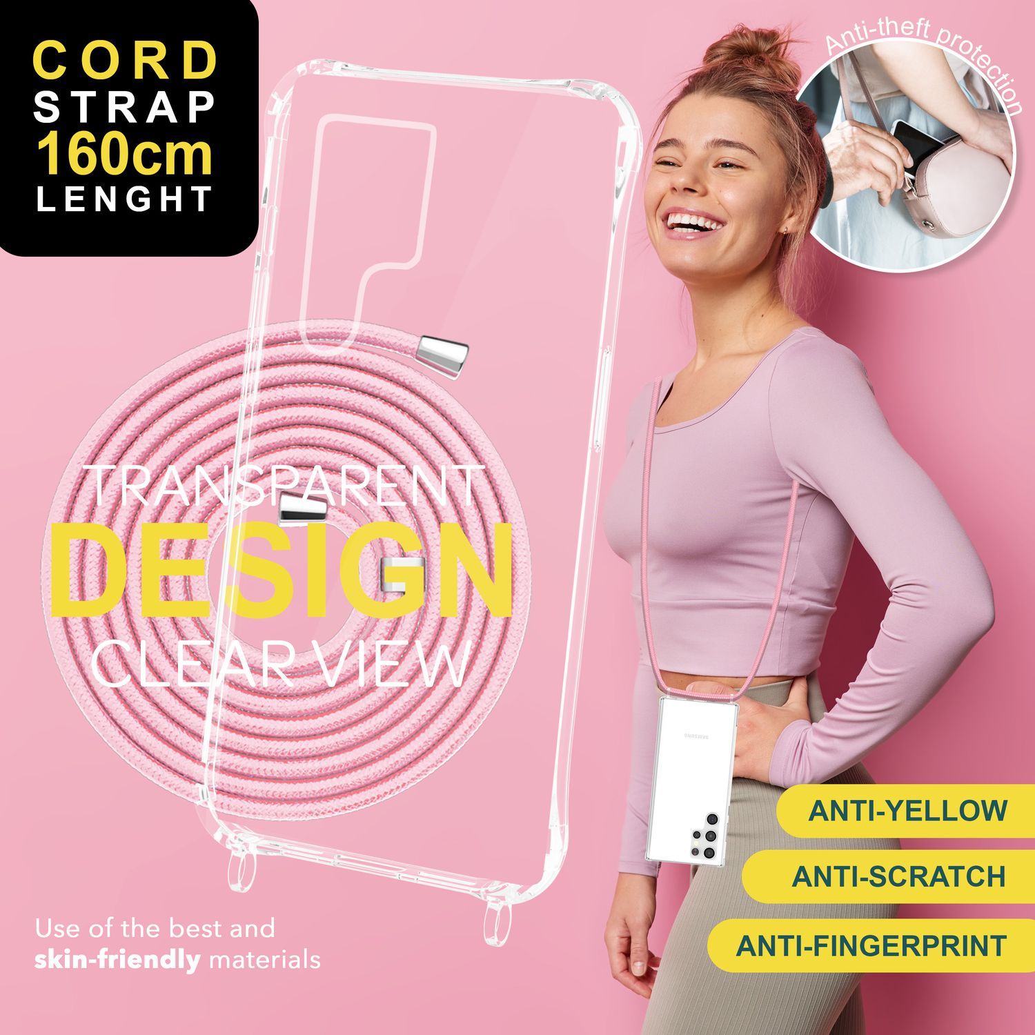 NALIA gegnsætt verndarhulstur með keðju fyrir Samsung Galaxy S24 Ultra, gegnsætt og sterkt símahulstur með snúru