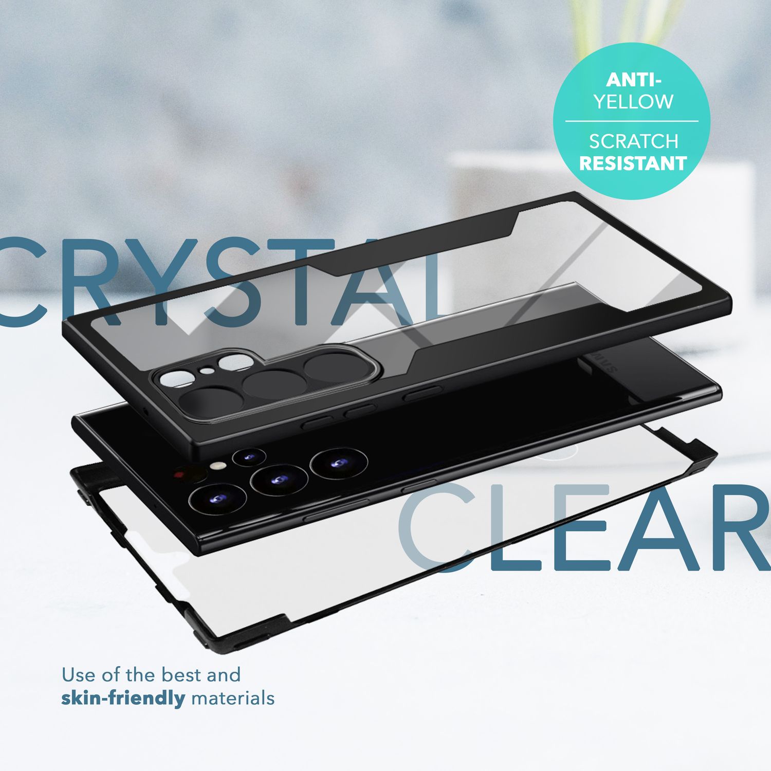 NALIA gegnsætt 360 gráðu hlífðarhulstur fyrir Samsung Galaxy S24 Ultra, rispuþolið hart bak og rammi sem verndar gegn falli