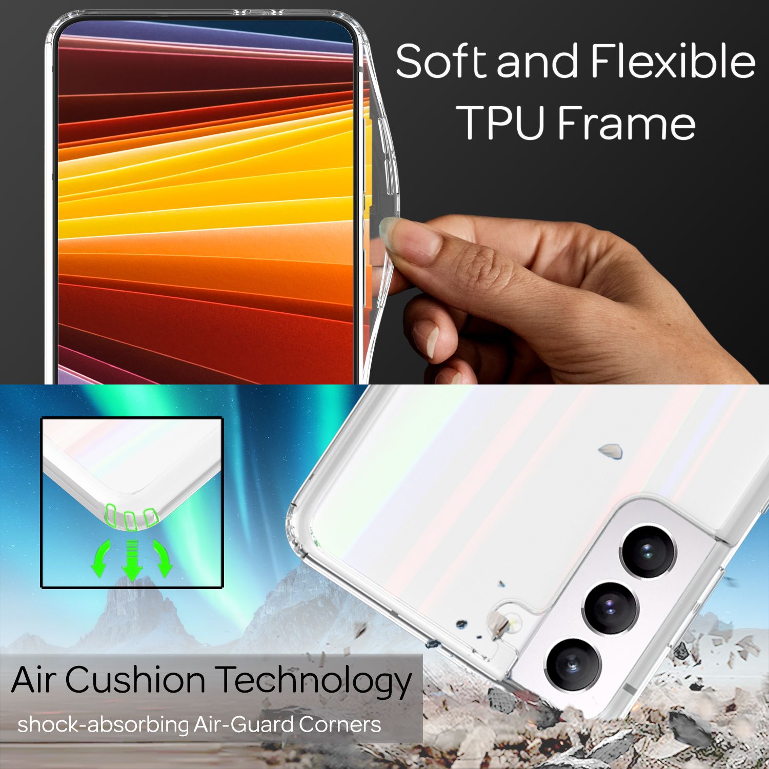 NALIA hulstur úr gegnsæju herti gleri fyrir Samsung Galaxy S22, regnbogaáferð gegnsætt, gulnandi, rispuþolið hertu gleri og sílikon stuðara, símahulstur